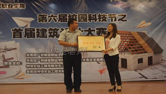 其中,5月24日在仲恺农业工程海珠校区学术报告厅举行的“筑梦飞”建筑设计大赛之手绘设计技能校际总决赛暨颁奖典礼,隆重而精彩。仲恺农业工厂学院党委副书记高岳仑、广州城建职业学院党委副书记、副校长张德宜以及相关部门、院系的领导老师亲到现场观看比赛。此外,现场还有300多名的参赛选手与观众,气氛热烈。比赛内容丰富而精彩,形式流畅而新颖,引起了现场领导老师以及同学们的极大兴趣与赞叹。比赛结束后,广州城建职业学院党委副书记、副校长张德宜对本次活动给予了高度的评价,表达了进一步加强两校合作与交流的愿望。最后,由明胜m88官网党委副书记高岳仑向广州城建职业学院赠予了“共建交流平台”的牌匾,表达了两校继续加强合作与交流的衷心祝愿。