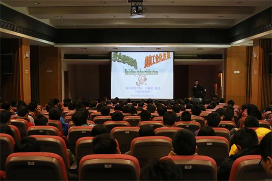 卓献荣院长首先从住建部文件与同学们一起分析研究了绿色建筑工业化的战略地位和当前任务。随后,他用通俗易懂的表述、大量图片、现实例子和播放视频等方式阐述了“绿色建筑”与“建筑工业化”的内涵以及国内外的发展现状,介绍了低碳、绿色、节能建筑的优异性和未来发展前景,对传统建筑业组织模式与建筑工业化发展之间的矛盾也提出了思考。此外,卓院长还强调学院未来将大力加强与大型建筑企业全面合作,积极响应并参与绿色建筑行动,在人才培养及创新研究上大力推动建筑工业化进程。他希望仲恺城建人能自觉肩负起时代赋予的使命,转变理念,积极响应并主动参与绿色建筑行动与建筑工业化推进发展工作,勇于迎接挑战、把握机遇而获得事业成功,为实现中国梦作最大贡献。