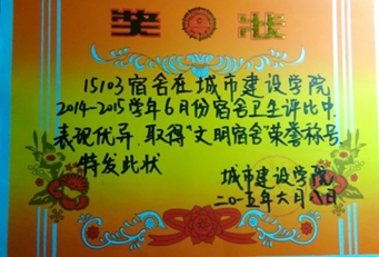 说一个好的环境能够影响一个人的学习气氛,因此,在班级学风建设当中,我们131班也注重各宿舍的清洁问题,并且积极要求遵守明胜m88官网《宿舍管理制度》,而且在这一学年里,我班获得了有一个宿舍获得了文明宿舍的奖励。