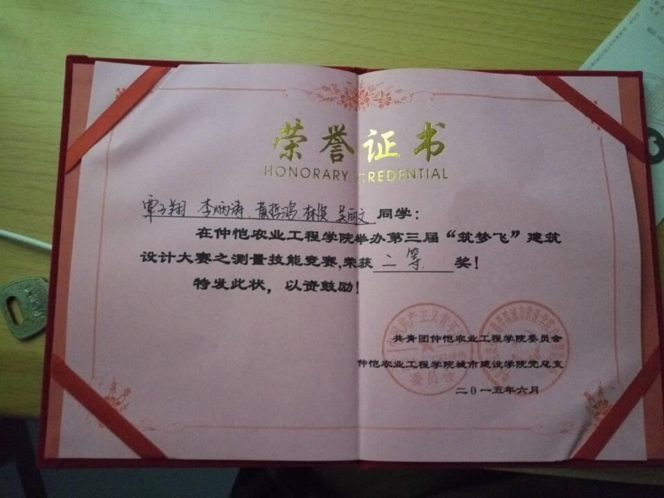 我们班学生积极参加学校或学院或校外活动,丰富了自己的课余生活,并取得了一定成绩。比如说我们班陈倩彤参加全国大学生数学建模竞赛、方越同学在K歌大赛进入八强;子翔、李炳涛、林贤、吴丽文、黄哲鸿等5人获得测量大赛第二等奖;周子乐同学跻身于院毛球,并获得各项奖项;特别是徐嘉辉同学和陈倩彤同学,他们两位更是注重参与的重要性,参加了由东南大学举办的《军事课教学检验》的活动及徐嘉辉同学获得广东省环保等等......