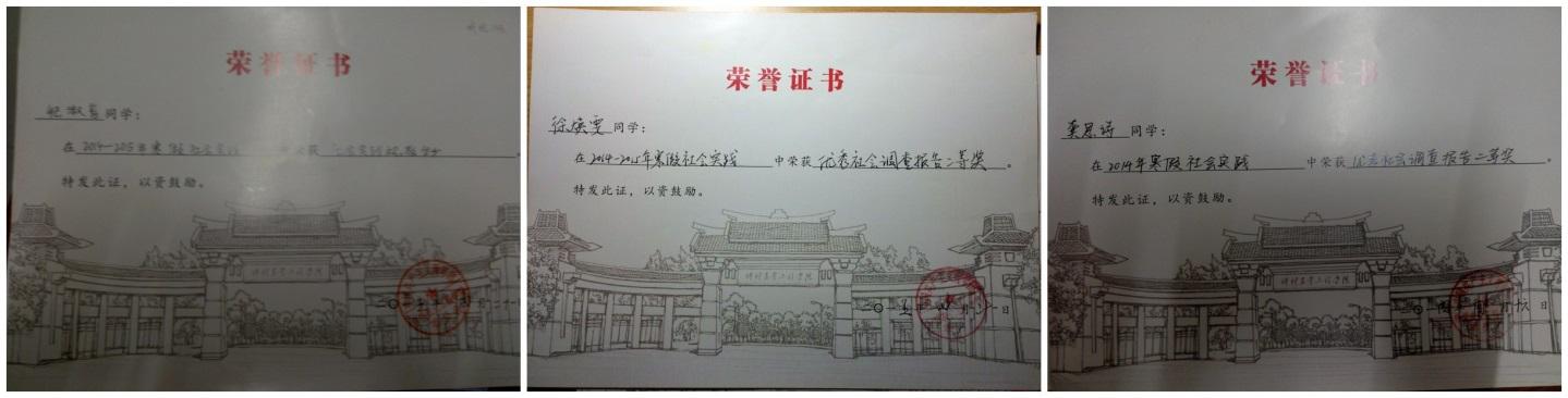 (2)积极参与学校和其他院的知识竞赛活动。如本班纪淑音同获得的职场精英挑战赛的一等奖。两位同学参与了仲园英语演讲比赛,三位同学参与了昆虫标本制作大赛等。