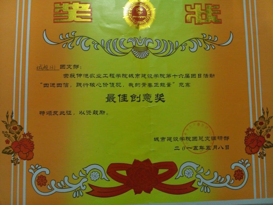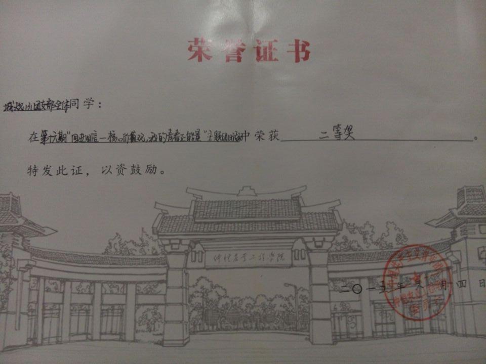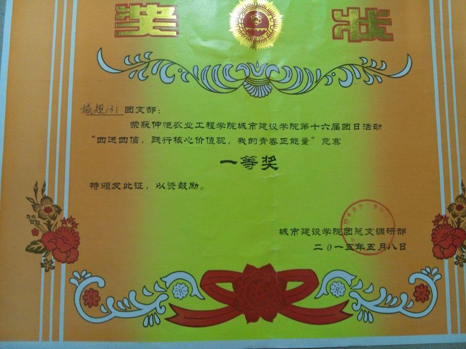 团日活动城规131团支部在学院中获取了一等奖的成绩并成功获得进击校决赛的名额,最终经过团支部的努力获得校二等奖的荣誉。