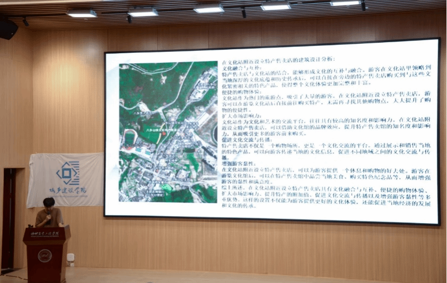 随后,公共市政组别的6支参赛队伍依次登台亮相。每个队伍的展示都经过精心准备,分为两个环节:首先是限时5分钟的PPT讲解,紧接着是5分钟的评委提问与选手答辩。这一流程不仅充分展示了选手们扎实的专业绘图技能,还凸显了他们巧妙独到的设计理念。评委老师们的细心点评,不仅精准指出了方案中的瑕疵,更以大赛为课堂,为现场观众和参赛选手们带来了一场别开生面的学习体验。