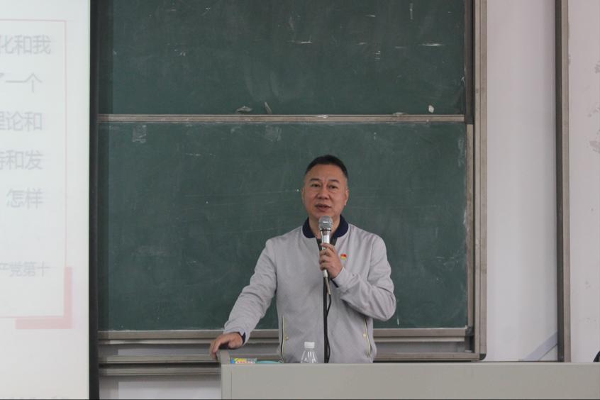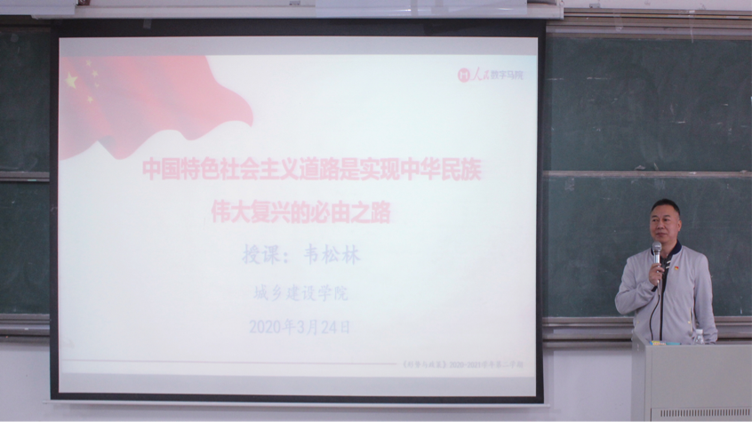 韦松林书记围绕“中国特色社会主义道路是实现中华民族伟大复兴的必由之路”这一主题展开论述。课程的开始,韦书记通过身边的小事情,引出当前青年学生思想教育的重要性。接着,他结合自身的经历与学术知识,生动地向学生们描述了中国逐渐站起来、富起来、强起来的过程以及自身深刻的感受。谈论到我国取得抗疫胜利时,他再次强调了社会主义制度的无比优越性。最后,通过“各国人的特质不同,管理制度也会有所不同”的观点再次诠释了“中国特色社会主义道路是实现中华民族伟大复兴的必由之路”。最后,韦书记强调,同学们必须要坚定“四个自信”,增强“四个意识”,做到“两个维护”,为把我国建设为社会主义现代化强国,贡献自己的力量。