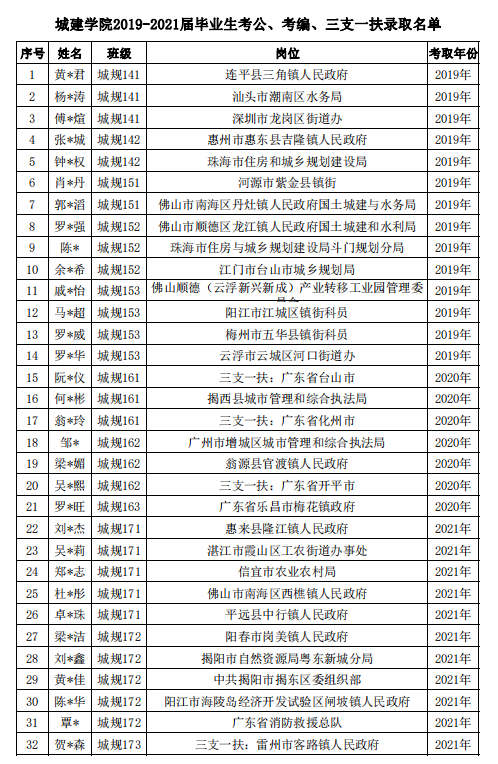 明胜m88官网2019-2021届毕业生考公、考编、三支一扶录取名单