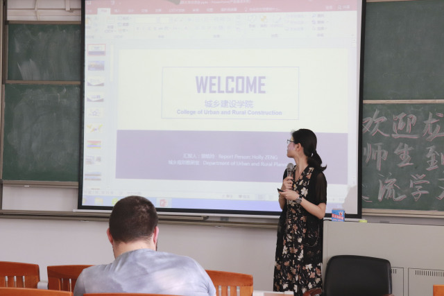 曾皓玲老师介绍了广州的文化,和地标性建筑,如广州塔,中山纪念堂,陈家祠等。曾老师还介绍了广州未来的规划,说到广州现在面临着人口密度大,交通,污染和发展不平衡的问题,与及相应的解决办法。程晔老师通过工程测量、设计方案、关键技术和项目施工四个方面进行了讲解。