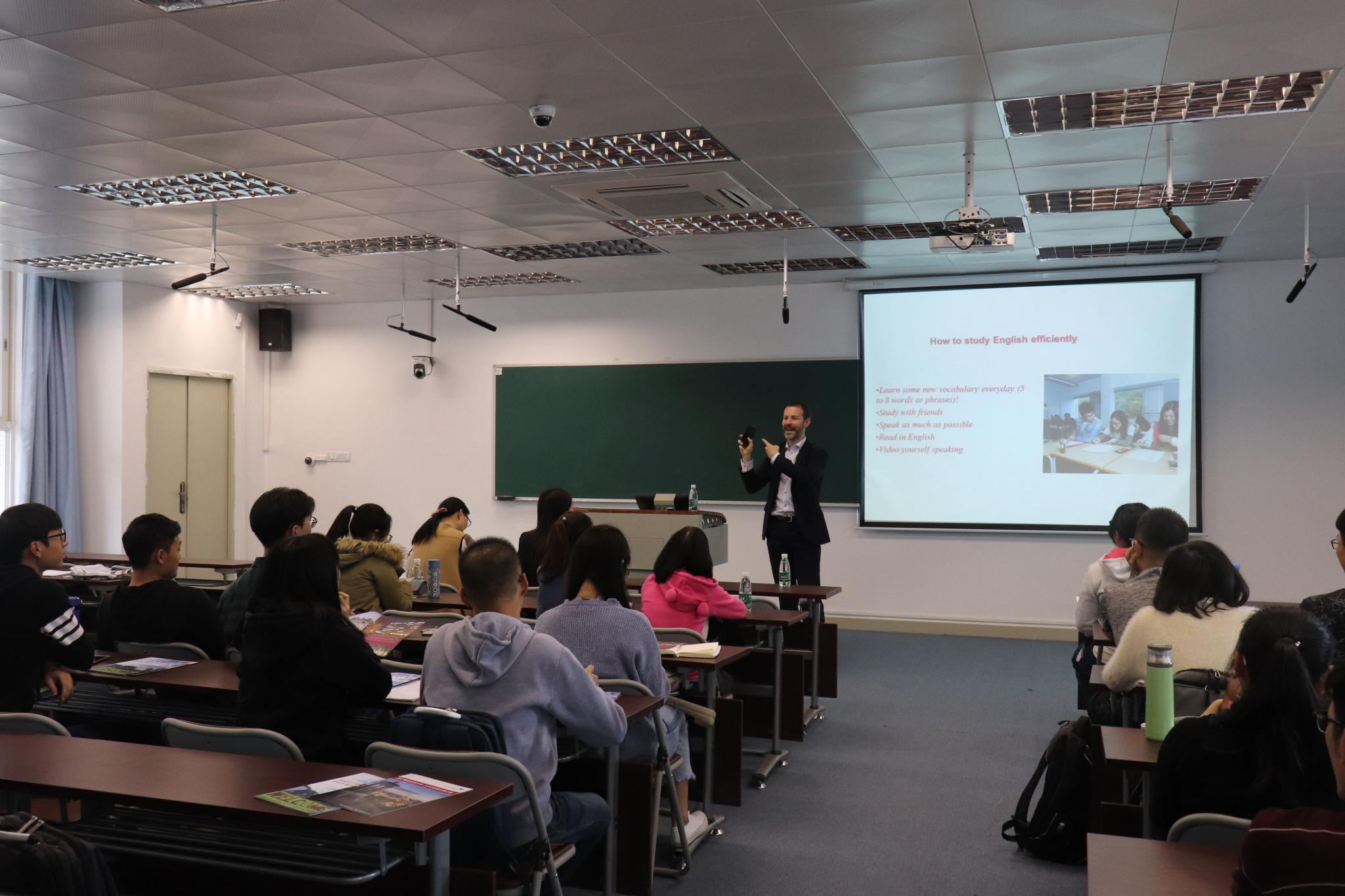 英国爱丁堡龙比亚大学语言中心主任来明胜m88官网作“如何有效学好英语”主题讲座