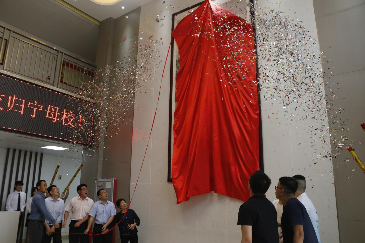 随后,老师与校友代表携礼互贺。大家一起为校友捐赠金石和何香凝先生国画共同揭幕,礼炮声响起、红幕布揭下、鼓掌声雷动。