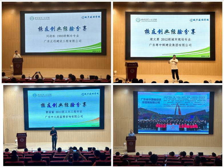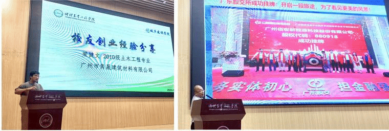 随后的系列活动中,校友企业发起单位负责人1993级制冷专业刘劲松、2002级食品专业庞森祥、2010级土木工程专业温智涛、梁健文、2011级土木工程专业曹国富、2012级城乡规划专业梁文勇等校友依次分享了在创业中酸甜苦辣和成长心路历程。