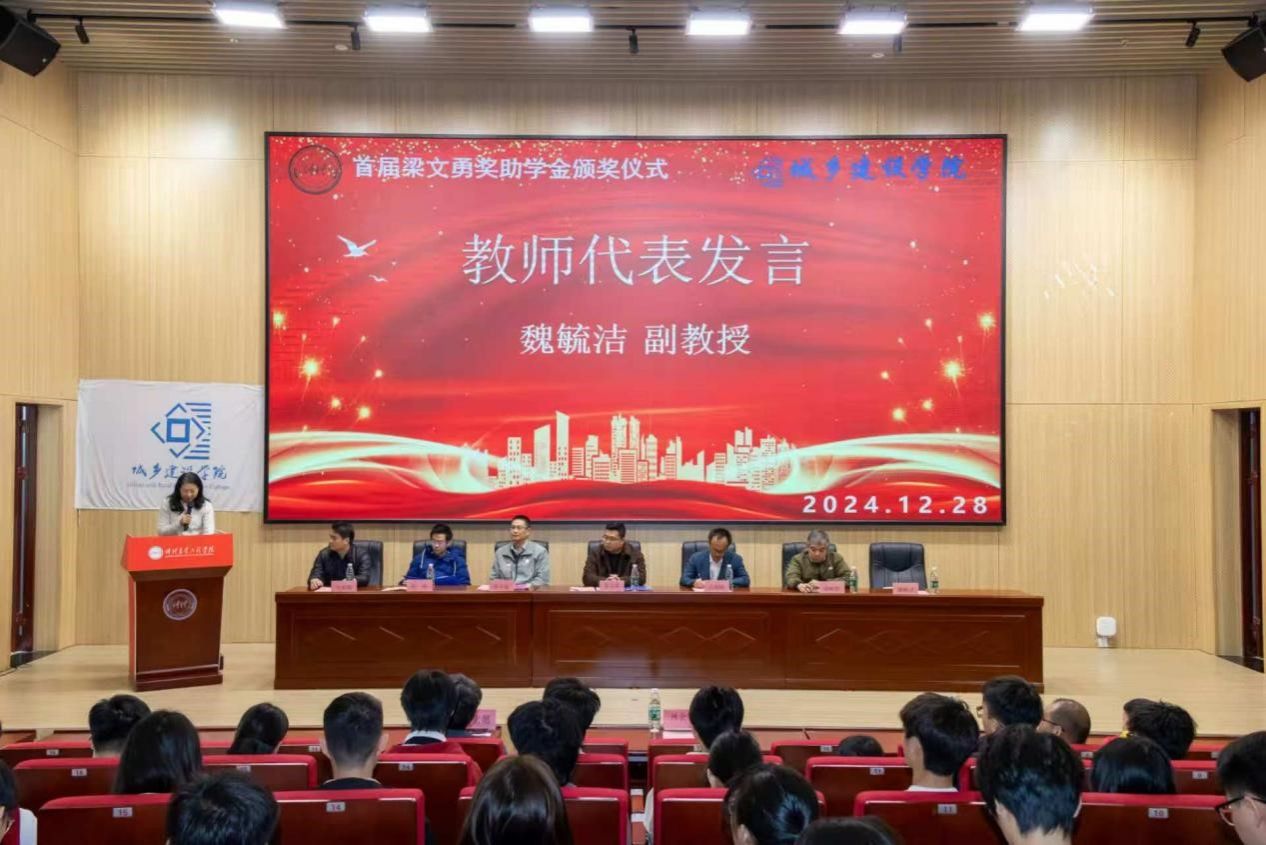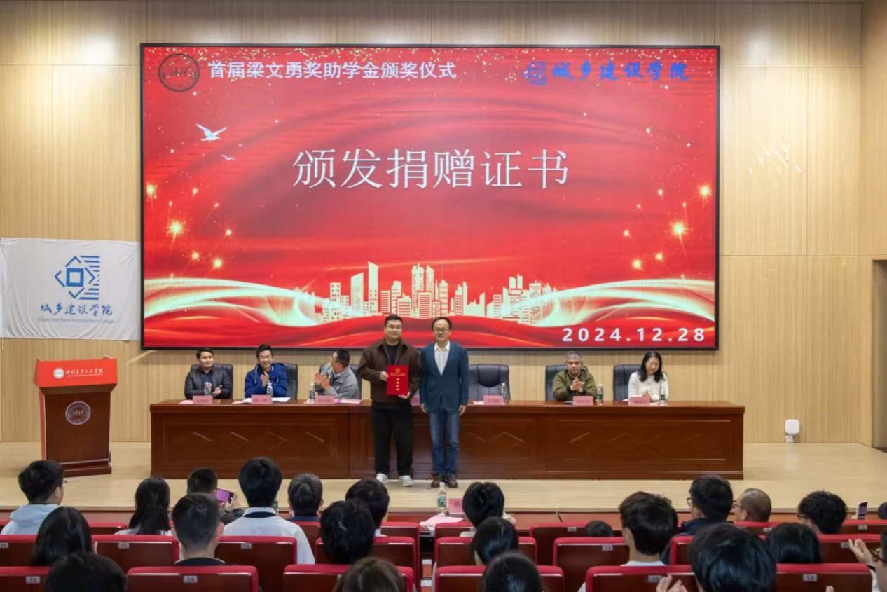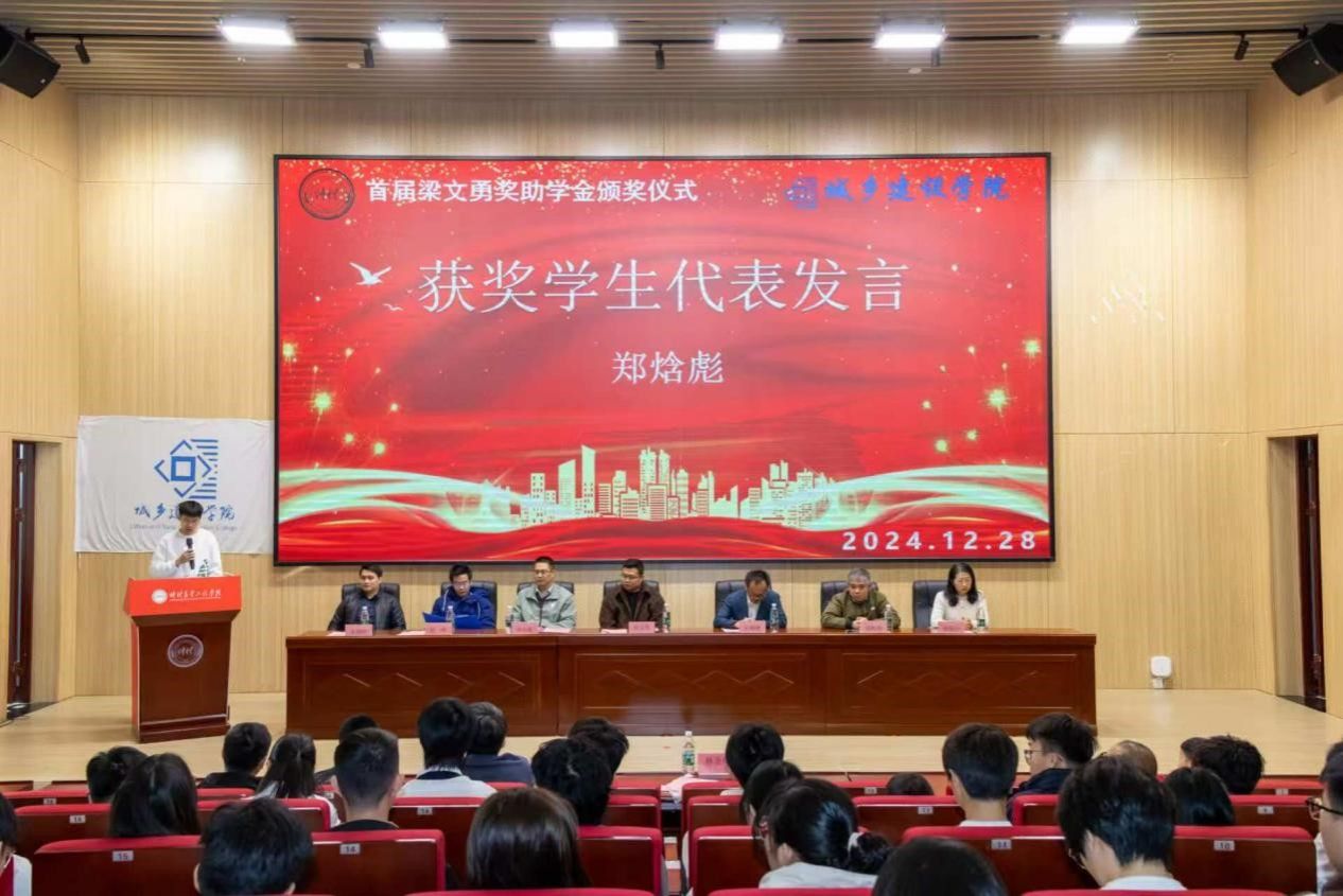 2022年12月28日,明胜m88官网在行政楼学术报告厅举行了首届梁文勇奖助学金颁奖仪式。本次仪式旨在表彰优秀学子,激励城建学生奋发向上、再创辉煌。参加本次颁奖仪式的嘉宾有该项奖助学金资助者——2012级城乡规划专业梁文勇校友、校党委宣传统战部副部长、校友事务部副部长石利刚、2021级部分校友代表、明胜m88官网班子、教师代表魏毓洁以及受奖助学生60名和各班学生代表,共200人见证这一时刻。