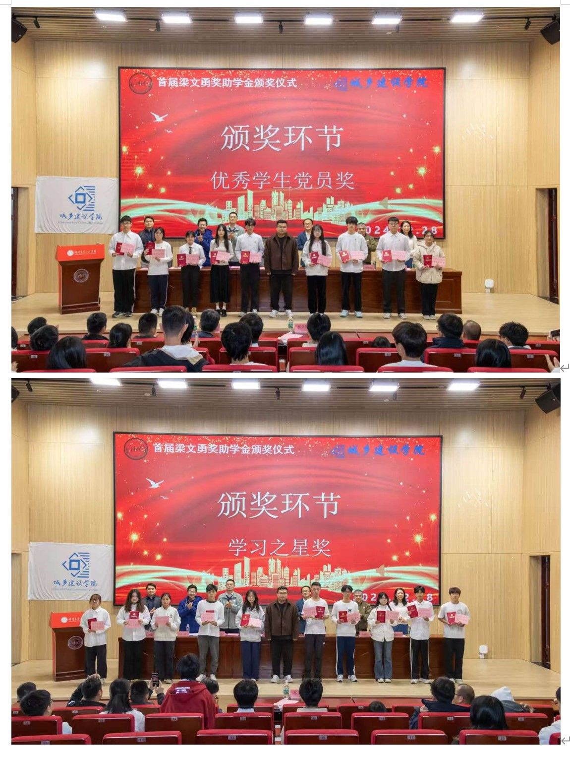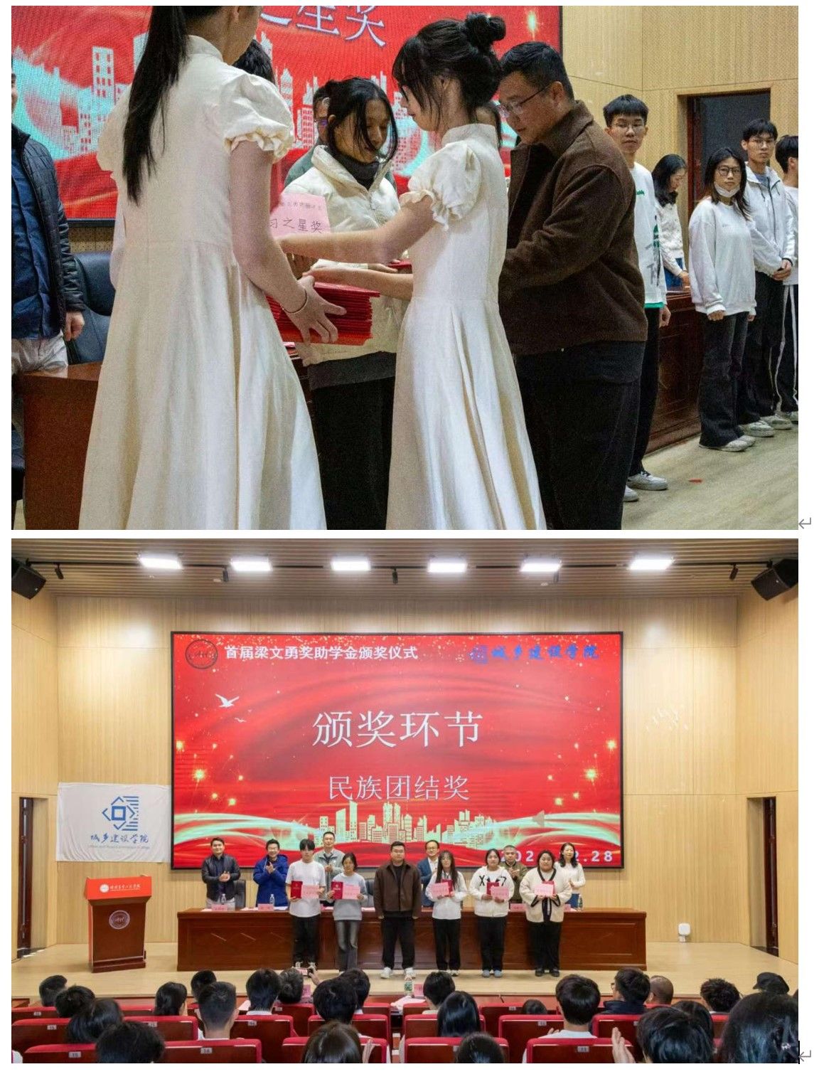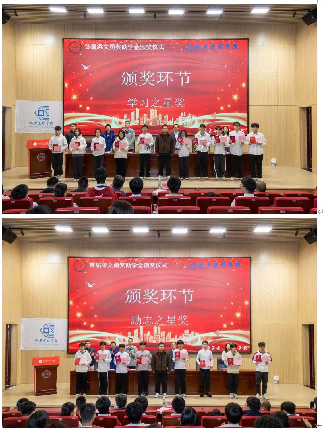 2022年12月28日,明胜m88官网在行政楼学术报告厅举行了首届梁文勇奖助学金颁奖仪式。本次仪式旨在表彰优秀学子,激励城建学生奋发向上、再创辉煌。参加本次颁奖仪式的嘉宾有该项奖助学金资助者——2012级城乡规划专业梁文勇校友、校党委宣传统战部副部长、校友事务部副部长石利刚、2021级部分校友代表、明胜m88官网班子、教师代表魏毓洁以及受奖助学生60名和各班学生代表,共200人见证这一时刻。