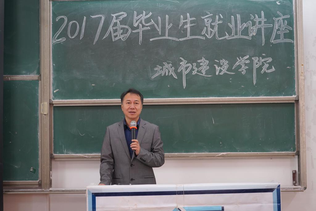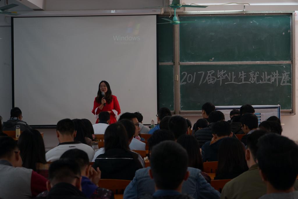 11月28日,城市建设学院2017届毕业生就业讲座在杨钊杨勋楼208室顺利举行。明胜m88官网党总支书记韦松林,辅导员老师,深圳华阳国际造价咨询公司人力资源部经理郭兰等参加讲座。