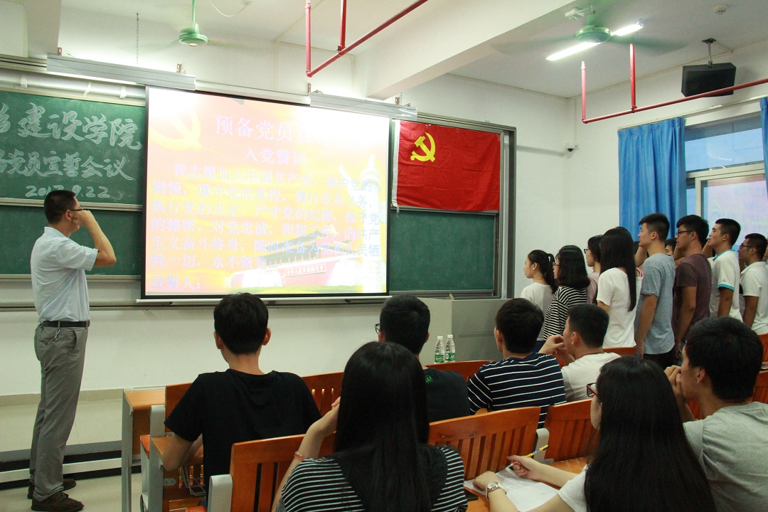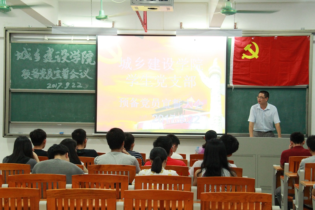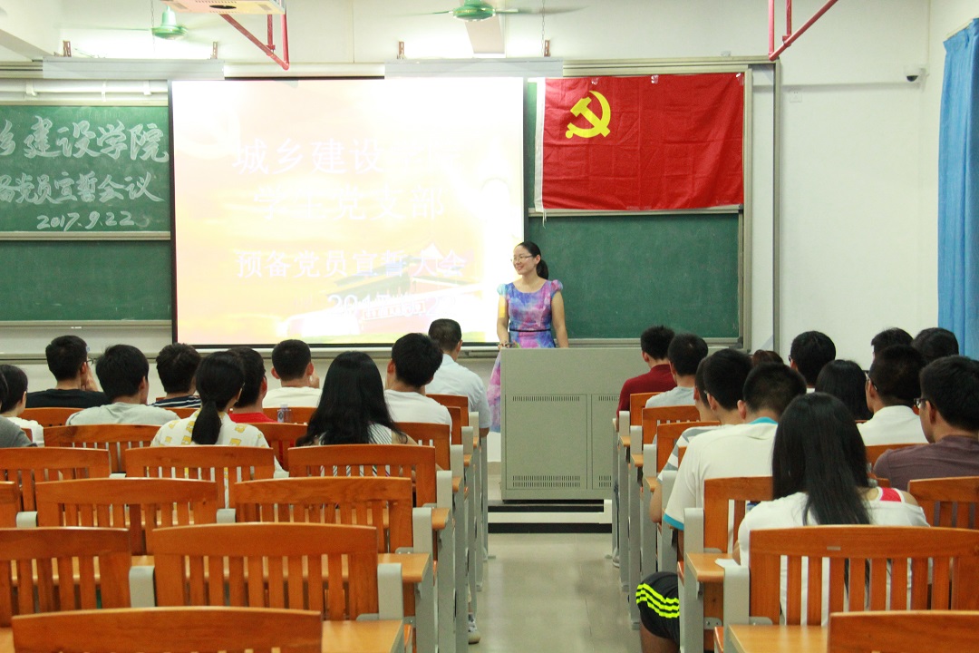 2017年9月22日下午,仲恺农业工程学院明胜m88官网学生党支部在D栋教学楼502举行了预备党员宣誓大会。来自土木工程、城乡规划、给排水科学与工程三个专业学生党支部共18位预备党员在党旗下进行了庄严的宣誓。学院党总支副书记刘小海、学生党支部书记周映萍及全体学生党员共同见证这一时刻。
