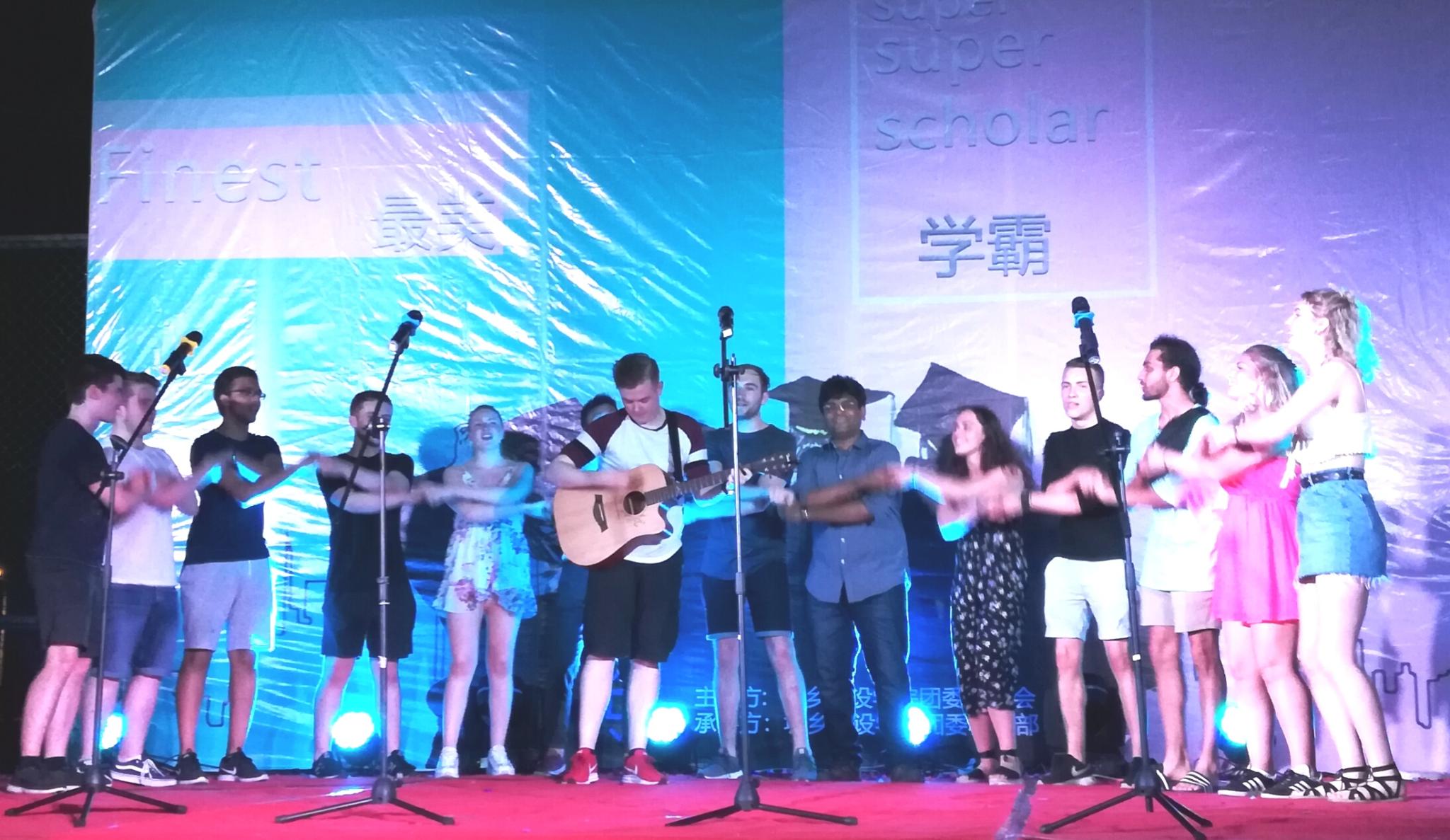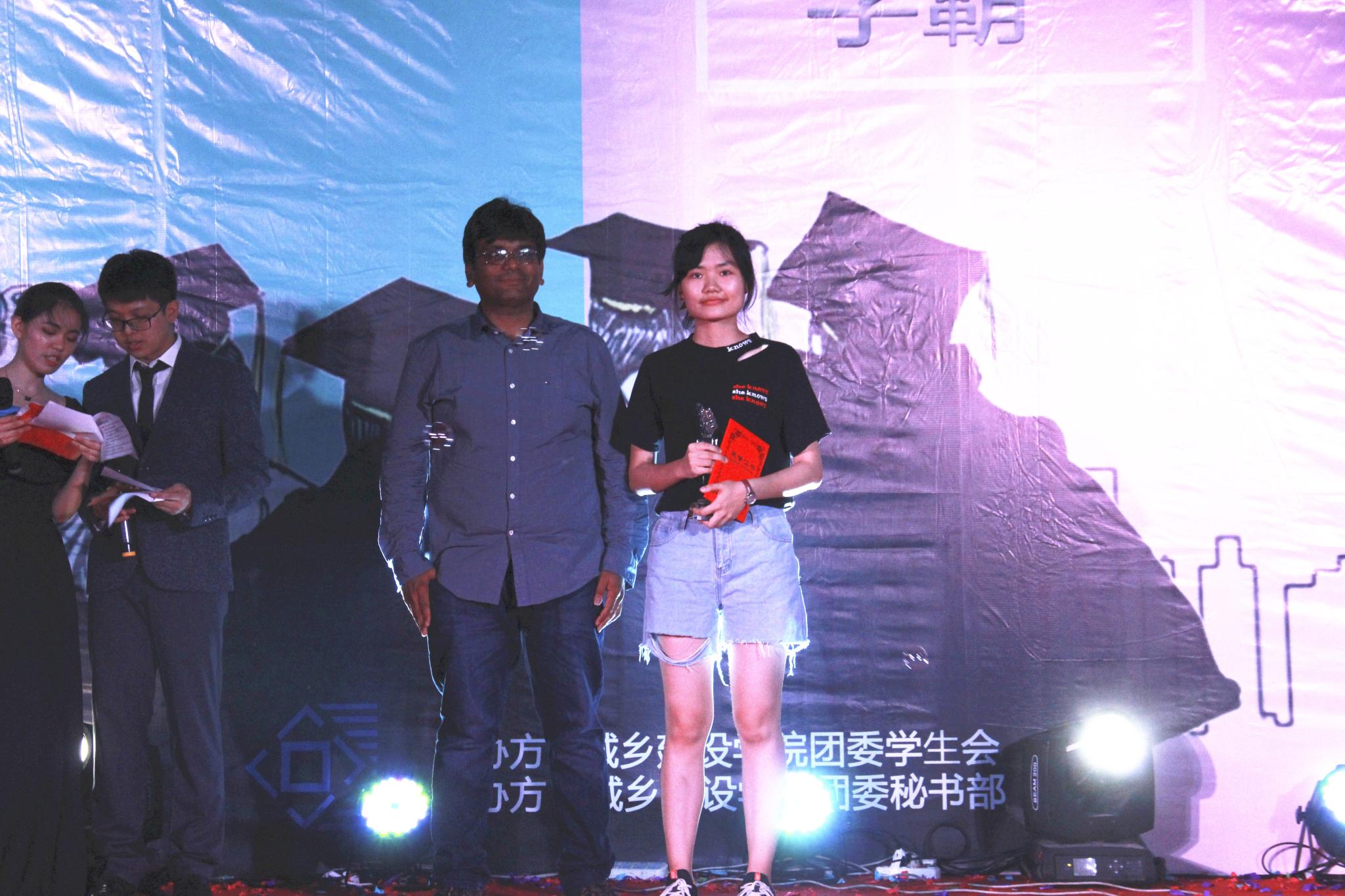 5月29日晚,明胜m88官网首届“最美学霸”评选活动决赛之才艺表演晚会在白云校区新篮球场举行。主要学生干部担任“最美学霸”候选人才艺表演的评委,出席嘉宾有该院领导、骨干教师、辅导员以及归宁母校的校友。英国爱丁堡龙比亚大学师生也应邀出席晚会。晚会由该院的司仪队队员中英双语主持。