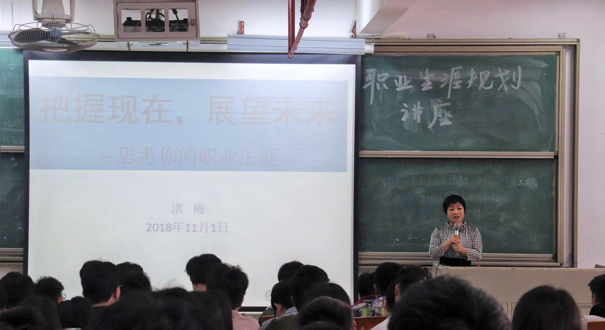 11月1日下午在白云校区D507,学校就业指导中心洪梅老师应邀为明胜m88官网2016级同学作了主题为:“思考你的职业生涯”专题讲座。该院辅导员周映萍主持了本次讲座。