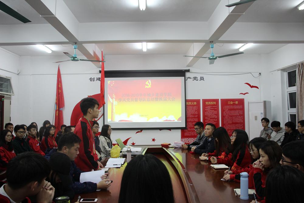 按照会议流程,上任给排水专业学生党支部副书记、督导队队长温啟贤作了工作总结。他介绍了督导队的成立背景、目的、工作职责,汇报了一年来开展学风督导方面取得成绩与不足。督导队主要检查宿舍的作息情况、课堂的出勤、课堂纪律,队员们利用课余的时间,为学院学风建设投入了大量精力,队员们的辛勤付出与老师和同学们的积极配合,使明胜m88官网的学风与宿舍学习氛围得到了极大的改善。他对队员们的感谢、追忆大家一起工作美好时光的恋恋之情溢于言表。接下来,温啟贤同志发表了对未来工作的展望,他表示,即使队伍的机制还不太成熟,需要队员们不断地跟进和提升,但相信队员们在新队长与学术部、生活部等部门的相互配合支持下,队伍能够愈发成熟,为学院的建设献出一份力量。