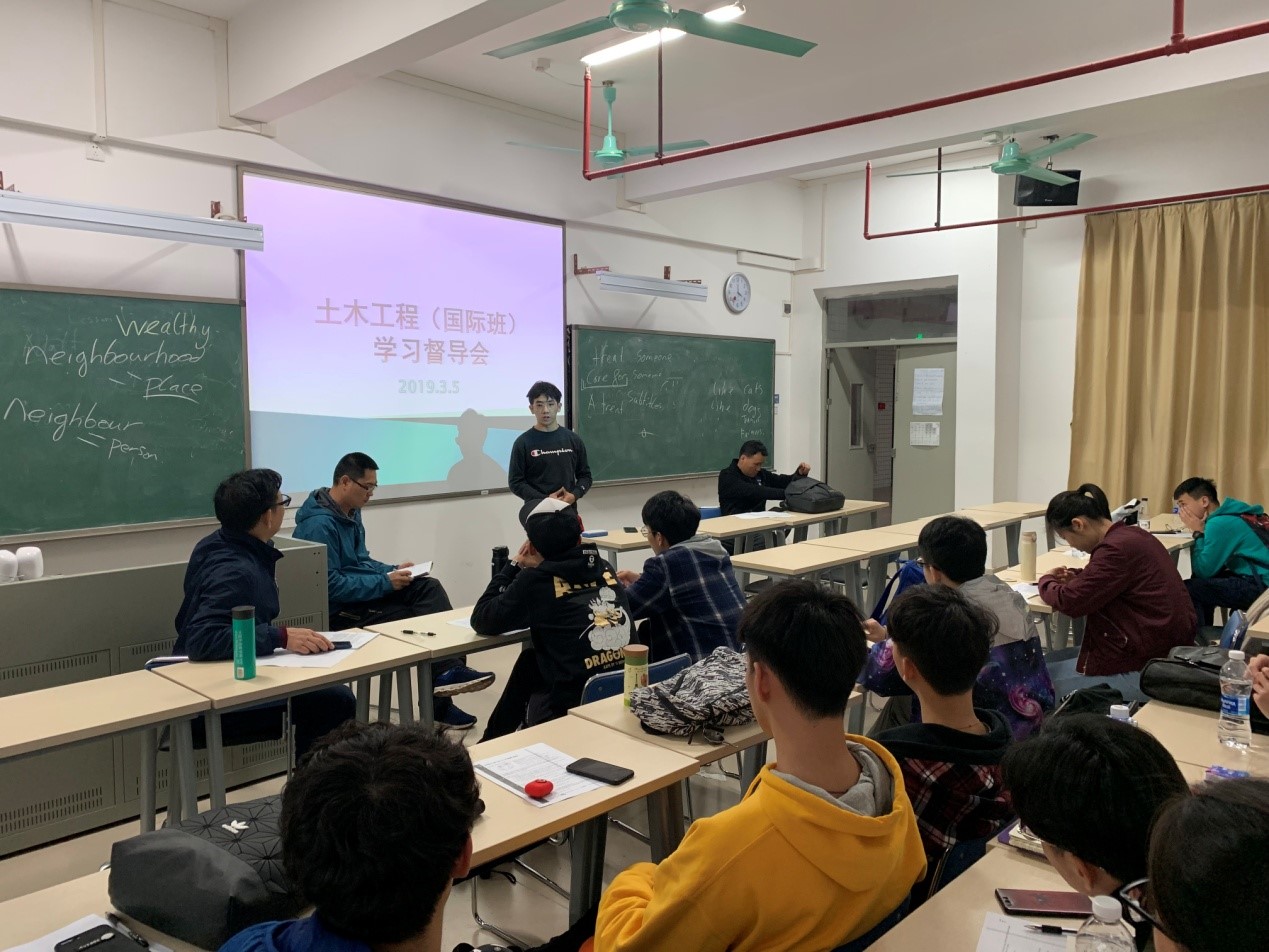 3月5日上午,由明胜m88官网组织的“土木工程国际班学习督导会”在白云校区D栋206进行。明胜m88官网院长卓献荣、党总支副书记刘小海出席了会议,土木工程17级国际班班主任赵甲荐老师及该班全体同学参加了本次会议。