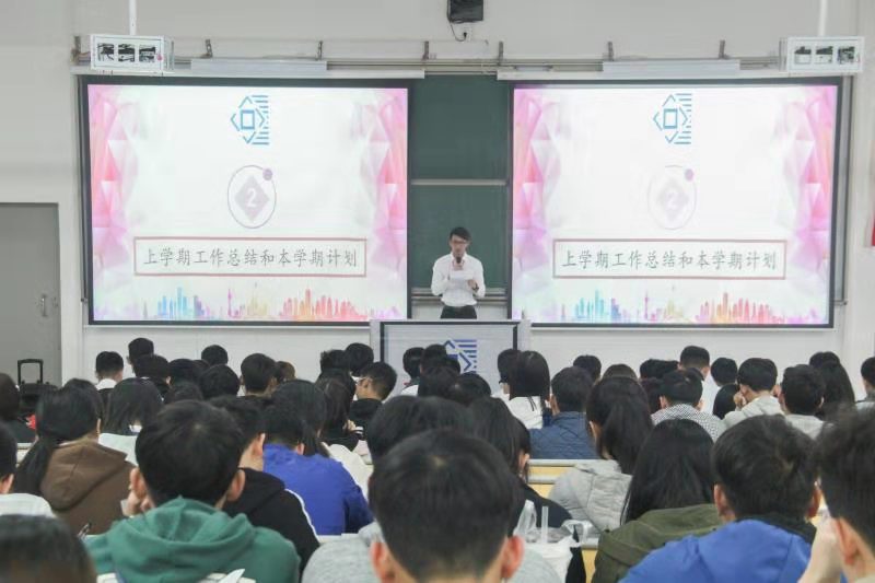 会议伊始,全体起立,奏唱团歌。紧接着,学院党总支副书记刘小海为获得优秀班集体的班级进行颁奖。随后,团委第二副书记梁逸伦、学生会副主席陈浩贤、秘书长陈福荣、新闻中心主任陈锐一一发言,他们对上学期各部门的工作做了详细的总结汇报,也提出各部门工作当中的亮点和不足之处,以及向大会成员阐述了本学期的工作展望。接着,由团委、学生会和新闻中心各部门的部长依次发言,总结上学期的工作并提出了这学期的工作计划。