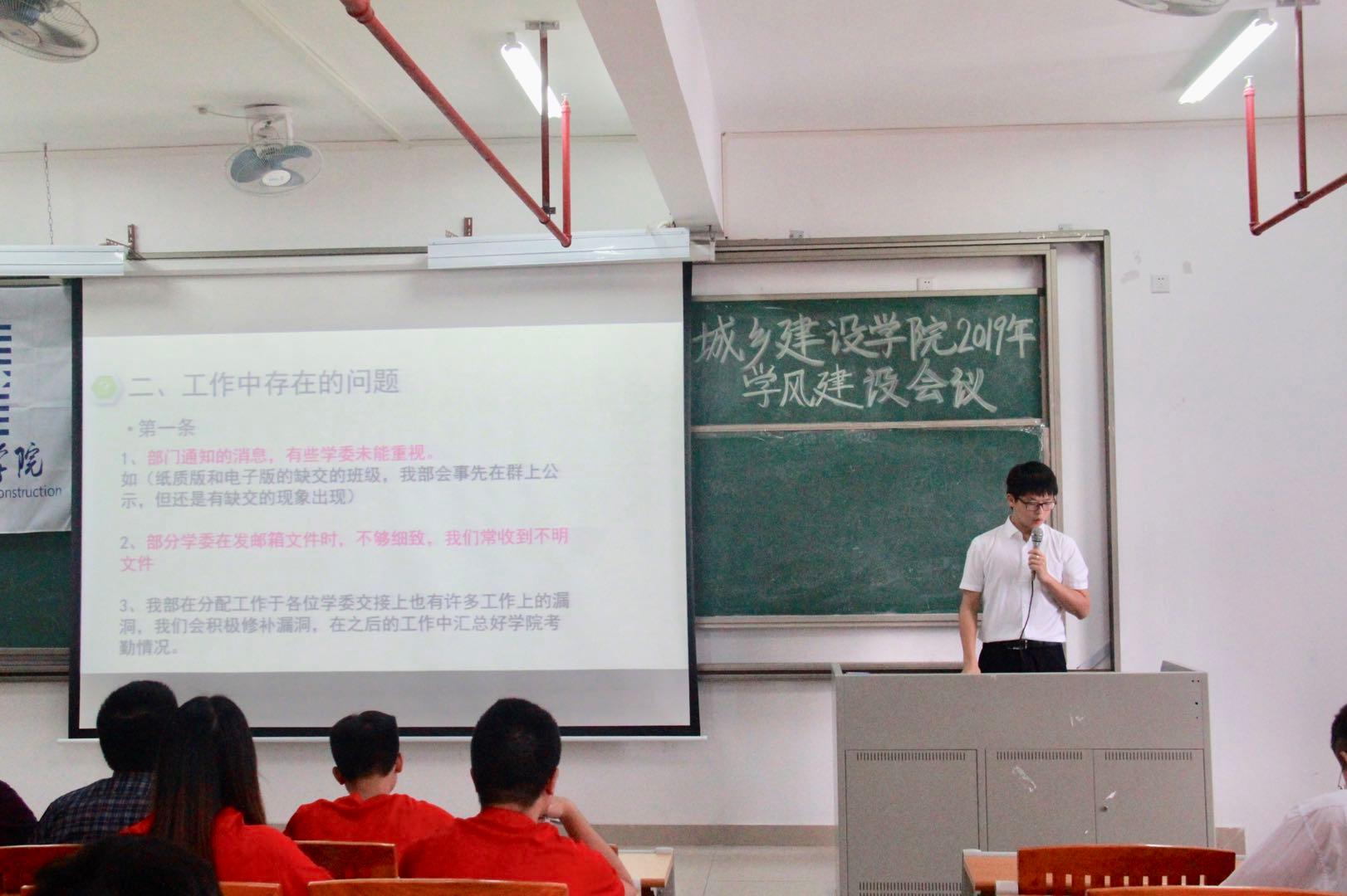 本次会议首先由学术部部长陈志浩向大家汇报学术部的工作情况。在过去一年中,该部负责收集各班日常考勤汇总情况,并将每月的考勤情况汇总上交至院办,同时公示于学院QQ群。他表示在过去一年的工作中,各班学委与学术部人员交接中还存在些许问题,学术部已针对这些问题一一提出了解决措施。