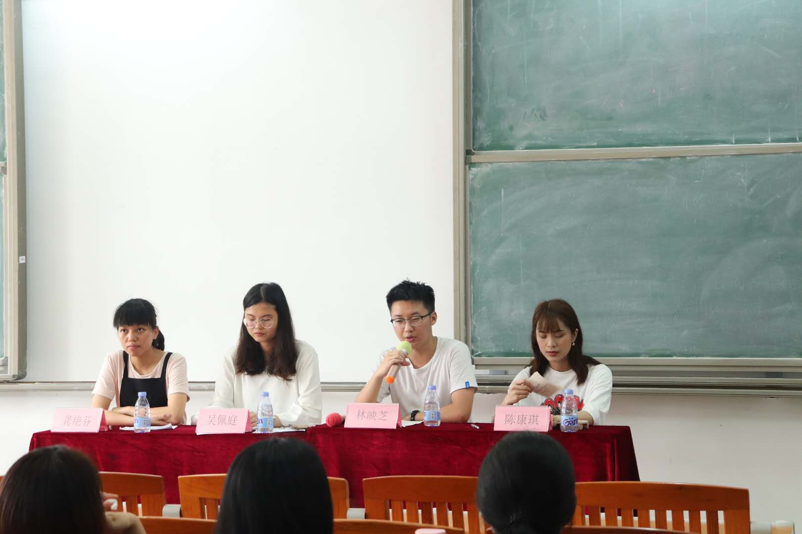接着,被录取为2019级研究生的师兄师姐们一一上台分享自己的考研经验和心路历程,以及相关的备考方法。其中,被广东工业大学录取的吴佩庭师姐表示,考研之前要有足够的思想准备,首先要明白自己为什么要考研,随后要了解研究生三年里要做的事情并且要形成自己的观点,最重要的是要静下心来备考。她讲到,一是学校的选择要看自身的兴趣与今后地区的发展;二是合理分配复习时间,尽早进入复习状态;三是英语、政治的背诵要抓紧,直到考前一刻也不要放弃。