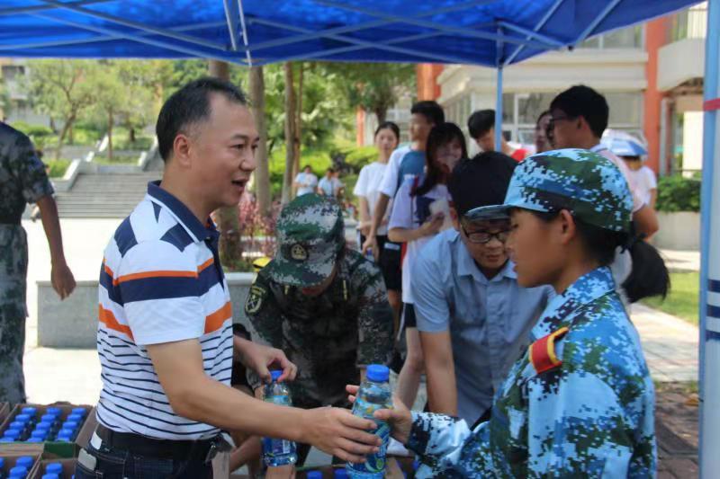 同时,书记还给每位辛苦训练的教官和新生们送来了清凉饮料,同学们接过韦书记亲手递过来的饮料,相信这一定鼓励能让他们在军训的最后几天里更加认真对待,全力以赴。