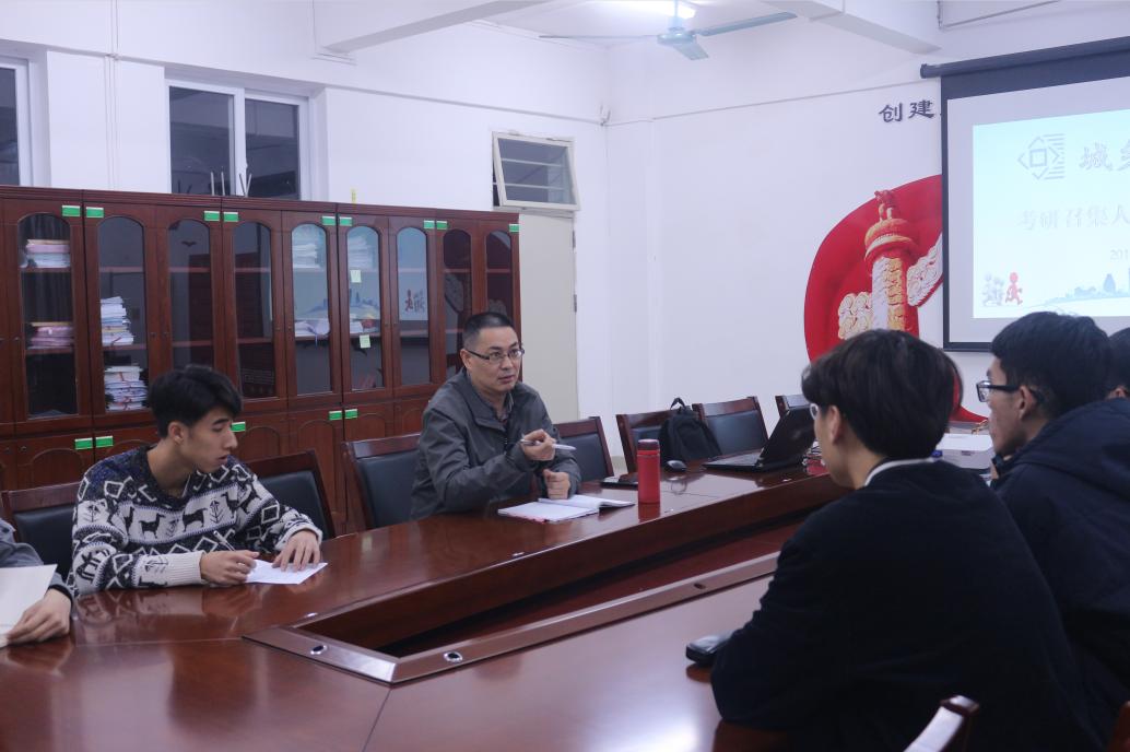 为进一步营造明胜m88官网考研氛围,鼓励更多城建学子加入考研行列,12月27日晚,明胜m88官网于刘楼313召开了考研召集人备考推进研讨会,参会人员有学院党总支副书记刘小海以及2017、2018级各专业考研召集人。会议梳理了前几年明胜m88官网考研备考工作的得失,共同商讨明后年考研备考工作计划。
