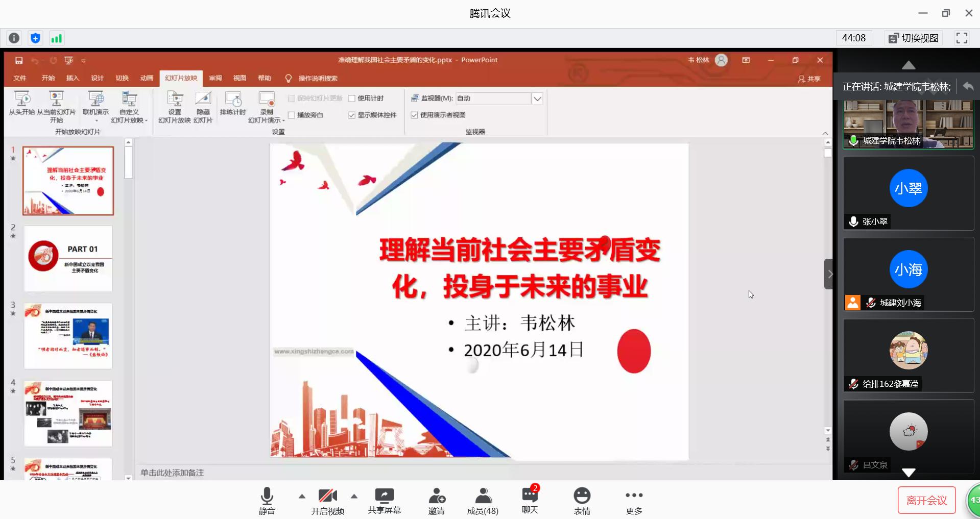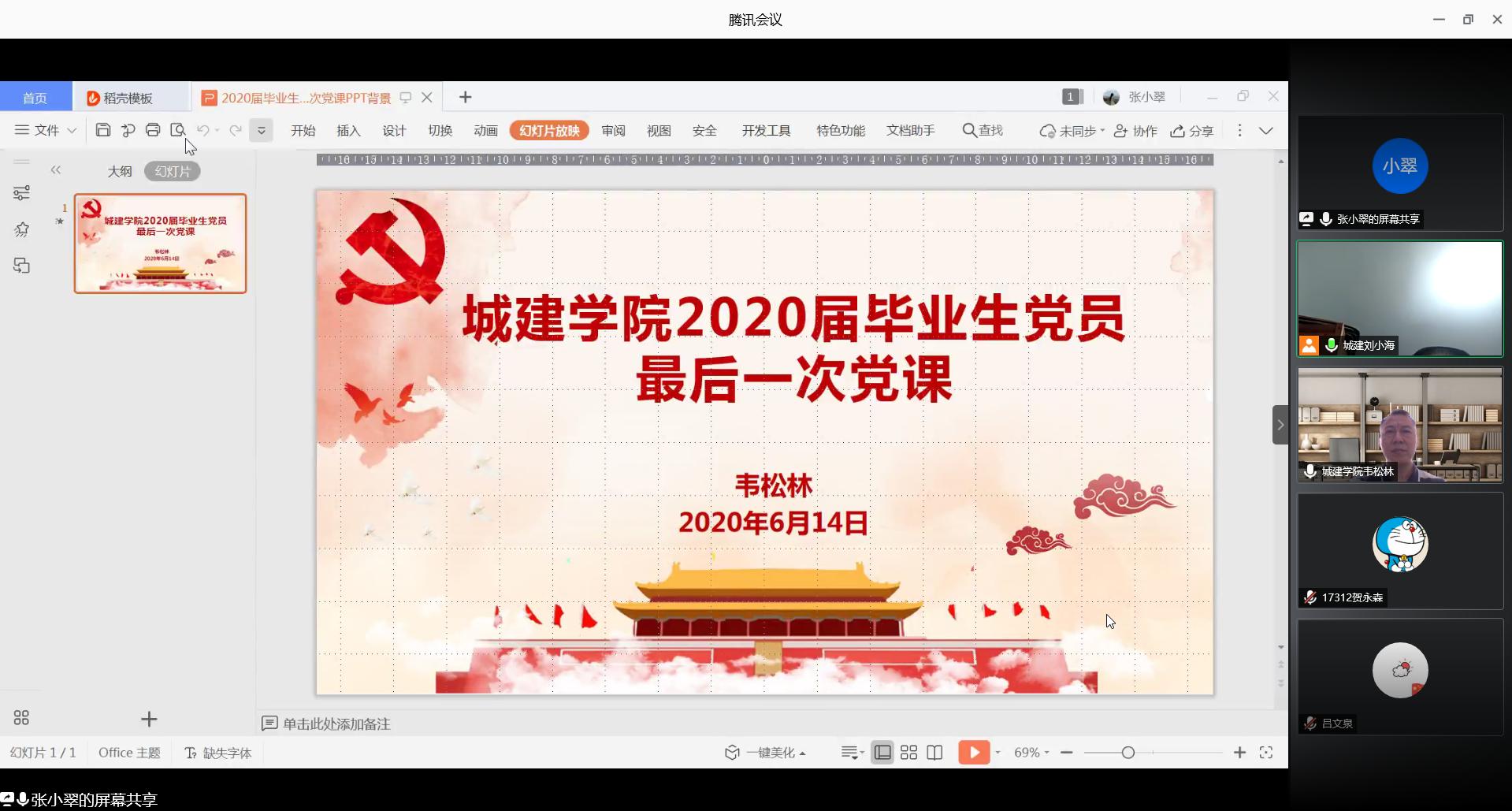 为进一步加强青年党员的党性教育,使毕业生党员在今后的工作岗位中勇于担当使命、发挥先锋模范作用,6月14日下午,明胜m88官网通过腾讯会议平台顺利开展了2020届毕业生党员最后一堂党课。党课由学院总支党委书记韦松林主讲,党总支副书记刘小海主持,辅导员张小翠、2020届全体毕业生党员以及部分非毕业生党员聆听了此次党课。