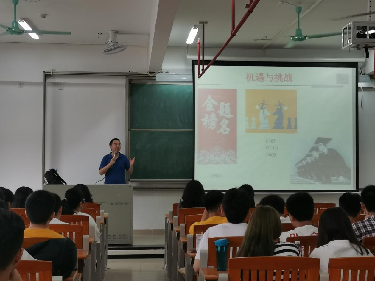 吴全科副院长为土木专业的同学们讲解了行业相关的内容,并提出同学们要注重技术线、管理线、证书线、生活线、健康线、底线六条线的发展,帮助同学们更好地畅通成长之路,并提出要注重综合素质的提高,脚踏实地地谋发展。
