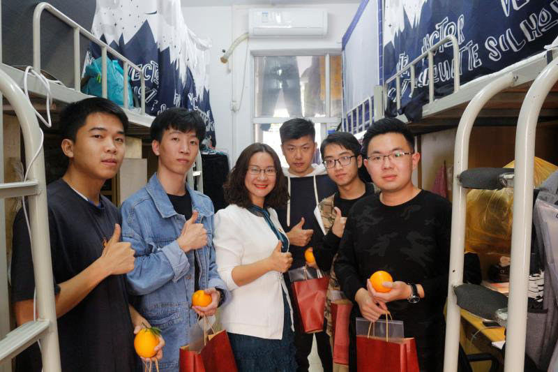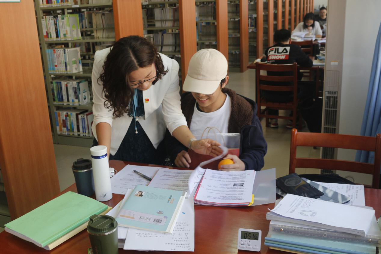 随后,辅导员周映萍来到图书馆自习室、考研备考课室以及学生宿舍为在紧张复习的同学们赠送加油包,加油打气。她逐个询问了同学们的备考状态,为大家提供备考建议,问询学生有没需要学院老师帮忙解决的现实困难,让同学们放心备考。