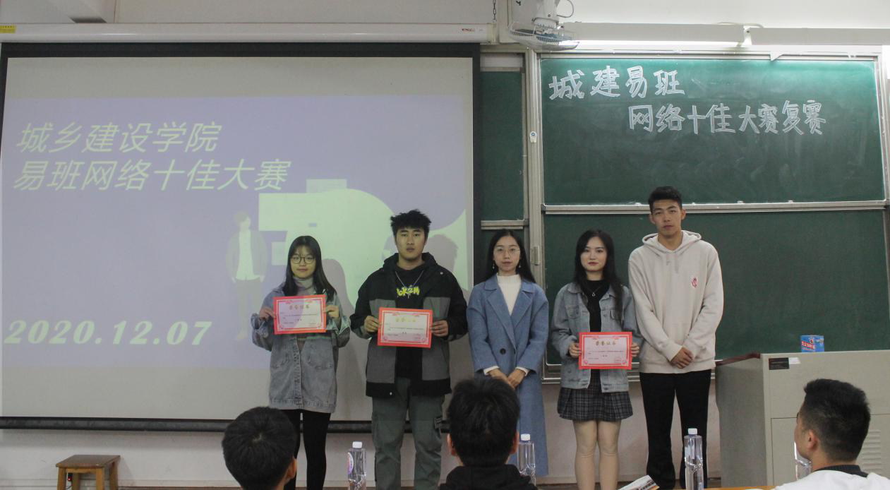 最后,主持人宣布本次城建易班十佳网络班级大赛复赛的评比结果:给排193班荣获一等奖;土木195班荣获二等奖;城规191班荣获三等奖;城规183班、城规202班、给排191班均荣获优秀奖,冯中心老师和张小翠老师分别为获奖班级进行了颁奖。通过这次比赛,大家能够更好地了解并熟悉运用易班的各个服务功能,更好地利用易班完善班级建设,促进营造良好的学风和班风。
