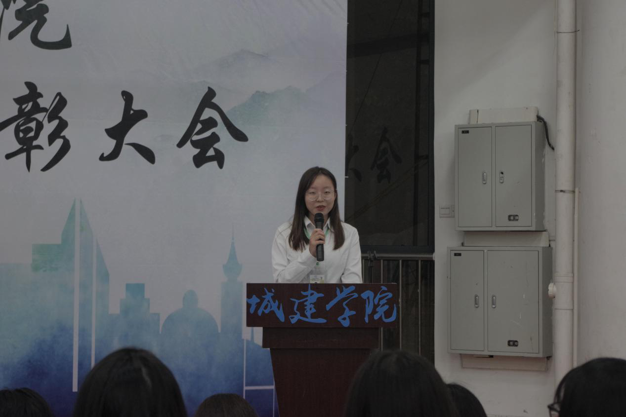 大会开始,辅导员老师张小翠上台致辞。首先,张老师对在过去一年为学院工作给予支持的学生干部表达亲切问候,以及肯定了过去一年学生干部做出的贡献。其次,她对学生干部提出了三点希望:一、希望学生干部要不忘初心、锐意进取;二、希望学生干部要明确自己的服务对象、提高服务质量,并且在完成工作的同时不能落下学业;三、希望各大组织、部门加强联系,学生干部要增强组织凝聚力、齐心协力。最后,张老师希望学生组织能不负众望并衷心祝愿大会圆满结束。