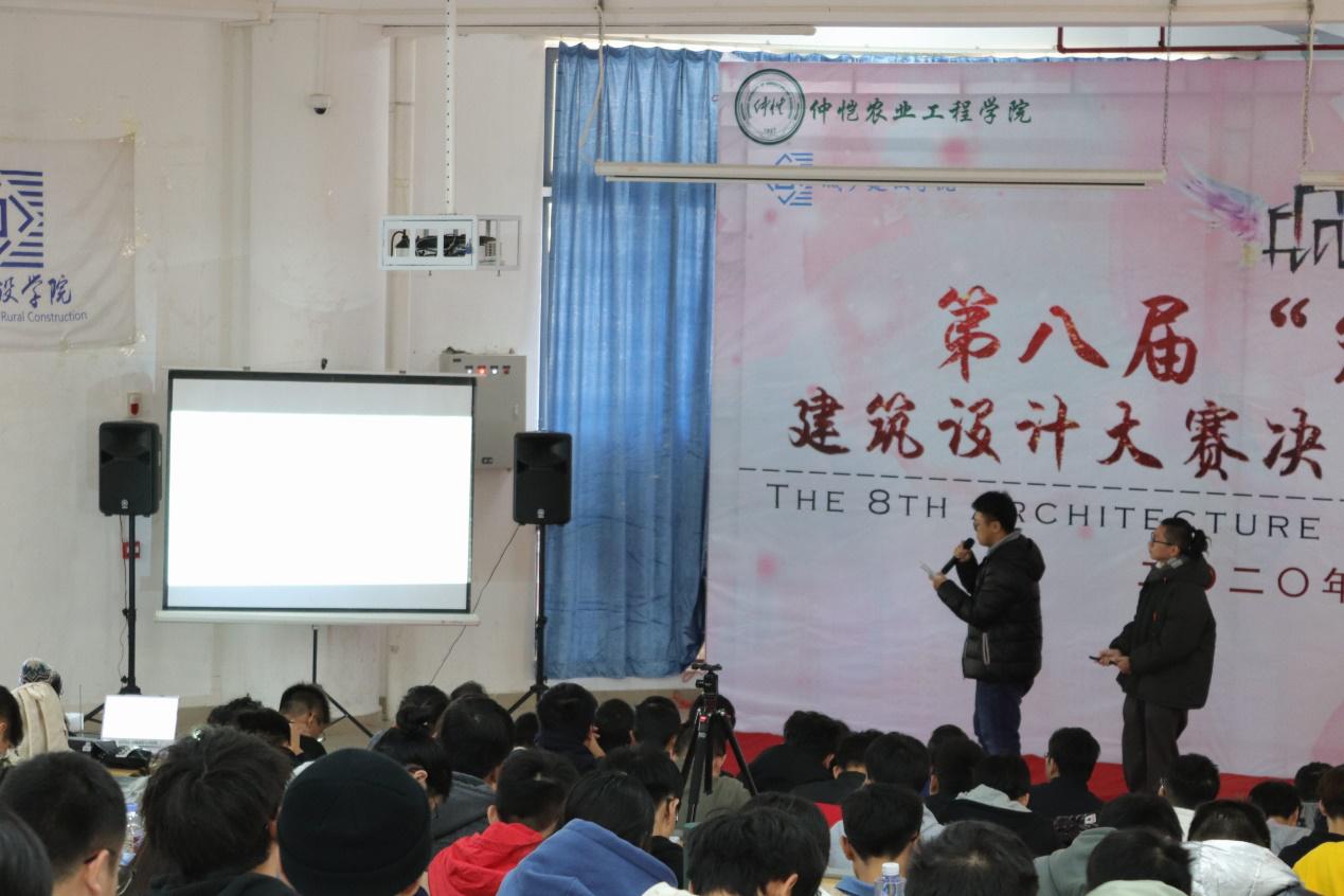 随后,比赛正式开始。首先进行的是建筑设计决赛,共有6支队伍参加决赛,本次建筑设计组的题目是“设计一座南方地区的现代办公楼”,6支队伍的代表上台以ppt和视频的方式为评委老师与同学展示各自的作品,为大家讲述了他们的设计理念以及作品亮点。最后的答辩环节,评委老师就各小队伍的作品表达他们各自的看法与理解,队伍也对老师所提出的问题一一作出回答。