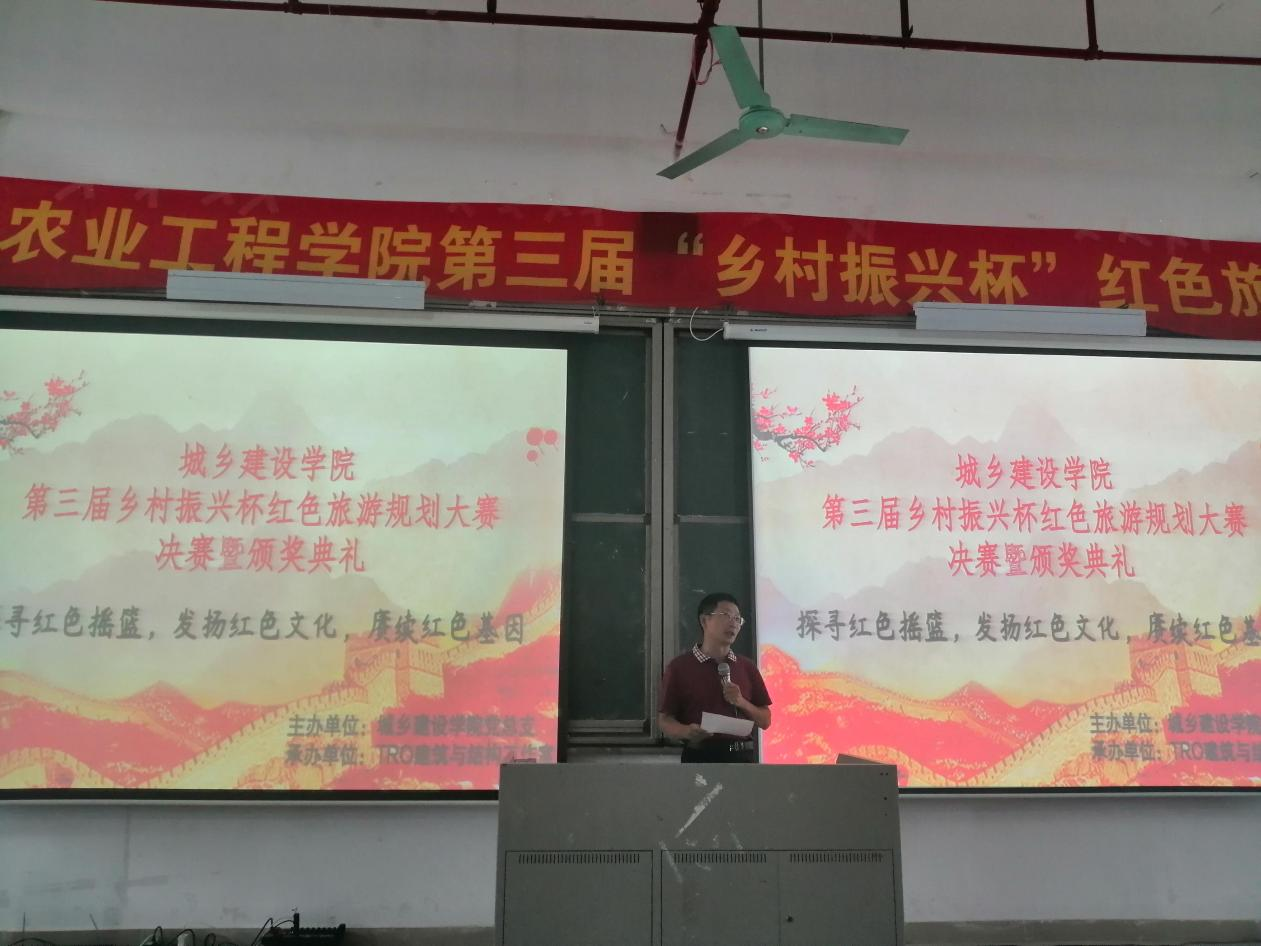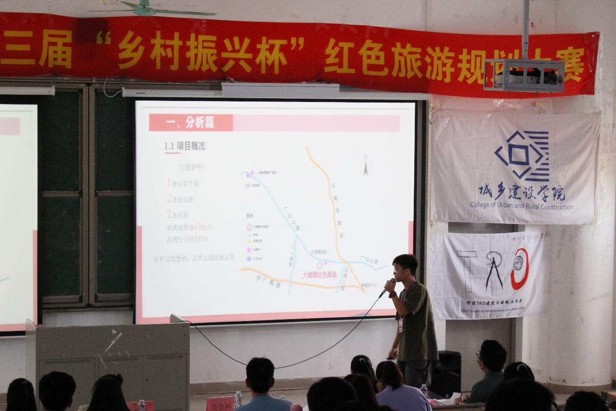 6月3日下午,明胜m88官网在D2小礼堂隆重举行第三届“乡村振兴杯”红色旅游规划大赛决赛暨颁奖典礼,本次大赛以“探寻红色摇篮,发扬红色文化,赓续红色基因”为主题,担任评委的有城乡规划专业系老师曾皓玲、徐莹、伦可欣、刘博洋、黄迎。到场的嘉宾有学院副院长吴全科,辅导员老师冯中心、张小翠、耿梦欣、莫金凤。为了响应疫情防控的要求,本次大赛的观众人数控制在100人以内,人人佩戴口罩,保持安全距离。