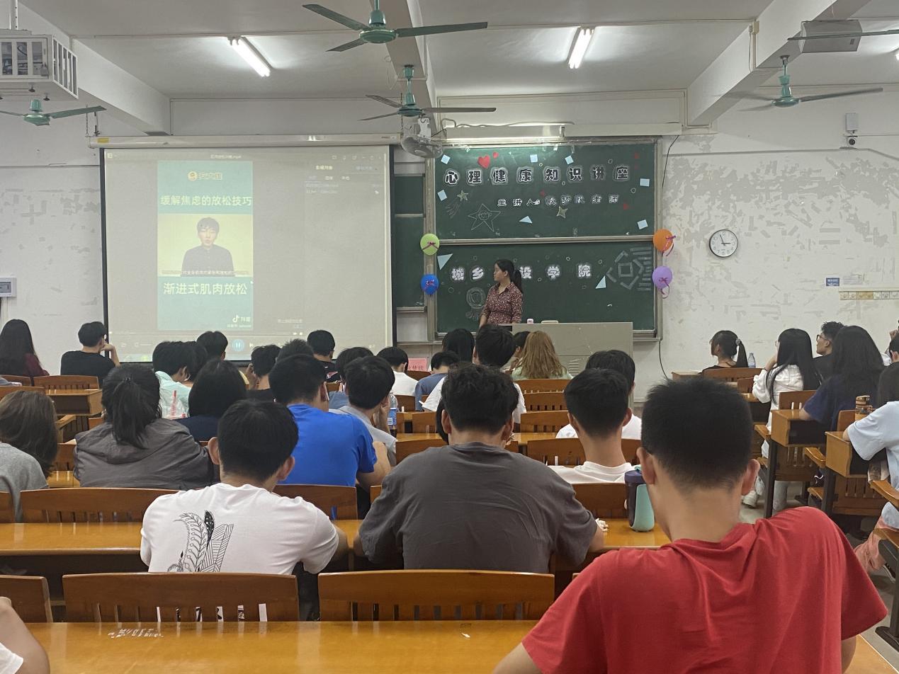 在讲座即将结束时,耿老师向同学们分享了“渐进式肌肉放松法”,并通过教学视频与学生们积极互动,旨在让同学们通过此方法在疲惫时能够合理地进行身心放松。