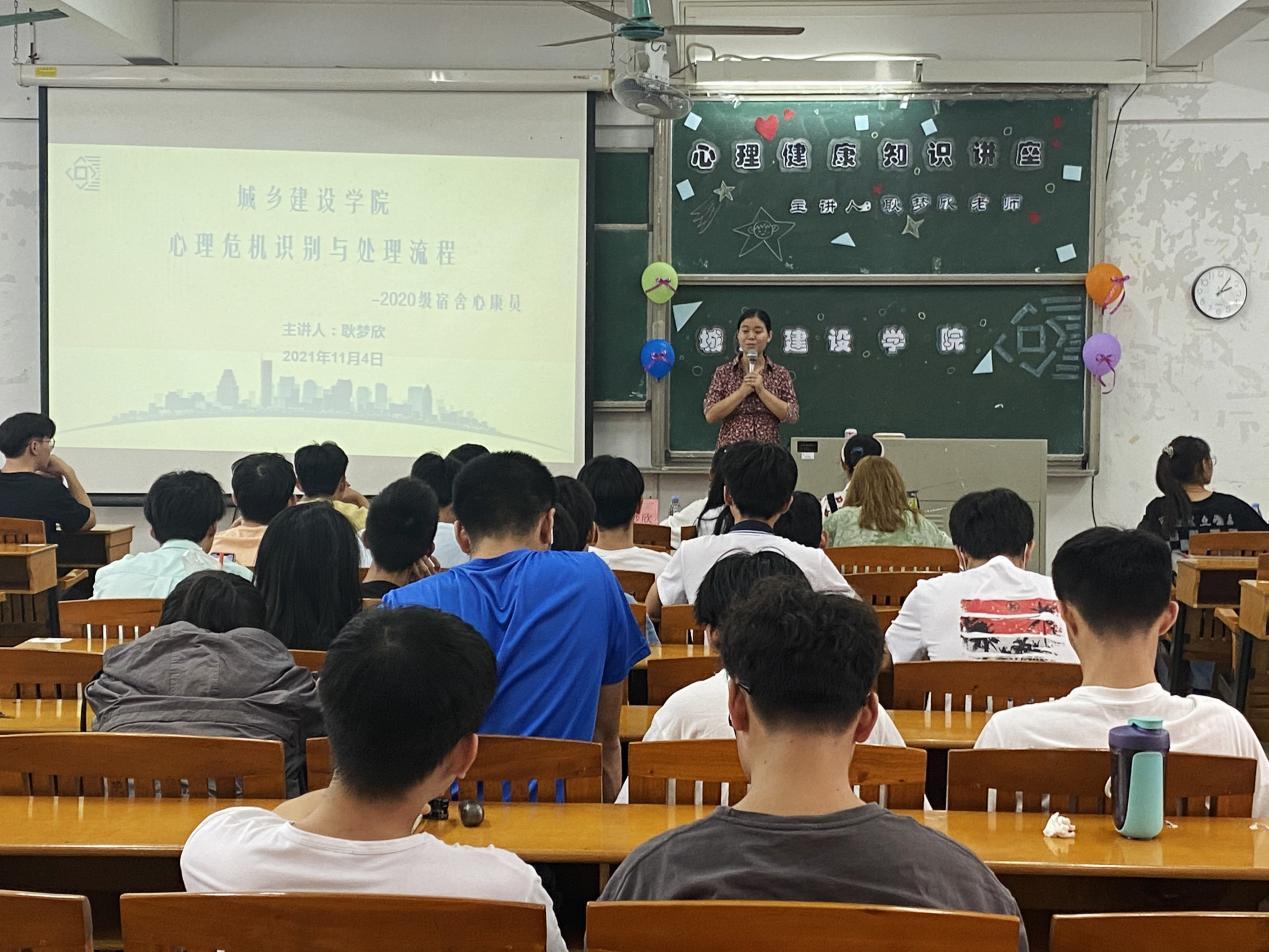 为进一步普及大学生心理健康知识,促进明胜m88官网学生健康成长和全面发展,根据计划,明胜m88官网于11月4日下午在白云校区杨楼209教室召开2020级宿舍心康员培训讲座,此次讲座由辅导员耿梦欣老师主讲,院部门解忧摆渡站、2020级各班心理委员和宿舍心康员共100多人参加了本次讲座。