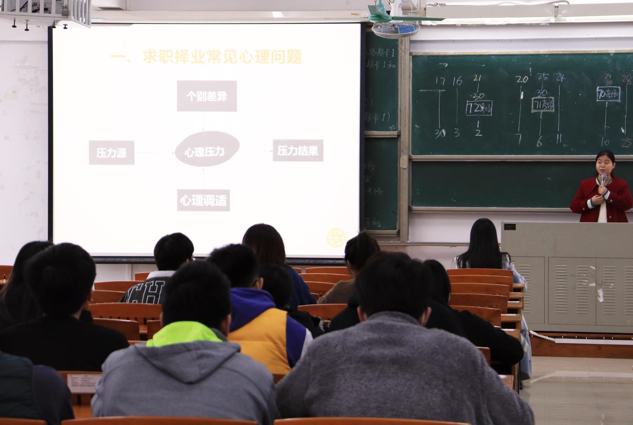 紧接着,耿梦欣老师围绕大学生求职心理进行分享,通过求职过程中的可能会遇到的焦虑、依赖、自卑、嫉妒、怯懦、骄傲等六大心理问题进行讲解,并分析求职过程中可能会出现各种不恰当的心理误区。耿老师叮嘱同学们要学会客观冷静分析自己,设计合理的求职目标,增强求职勇气,减轻焦虑情绪。学会转换角色,注意言行、着装打扮,职场礼仪等;学会客观评价自己,树立良好的心态;学会正确认识社会,寻找切合实际位置。