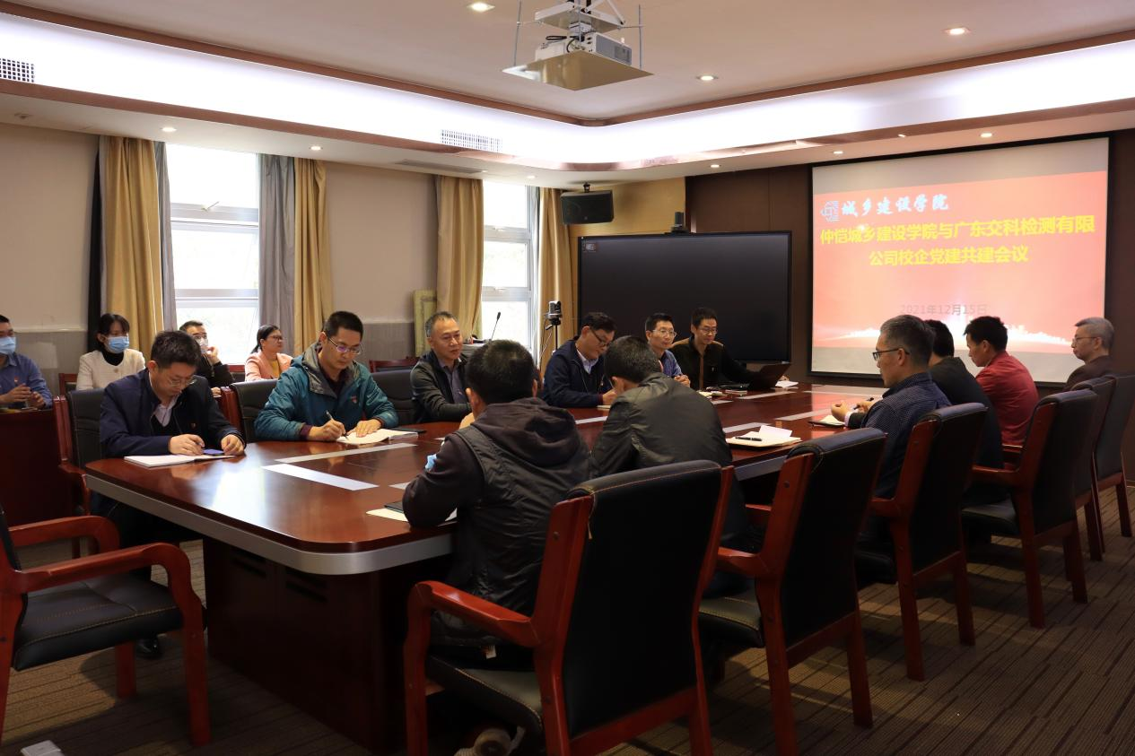 12月15日下午,明胜m88官网党委在刘宇新楼组织开展与广东交科检测有限公司党总支及第四党支部的校企党建共建活动。明胜m88官网党委书记韦松林、院长卓献荣、党委副书记刘小海、副院长吴全科、吕建根、乡村振兴党支部书记程晔及乡村振兴党支部所有党员和广东交科检测有限公司党委成员、五个党支部书记及第四党支部党员出席此次活动。