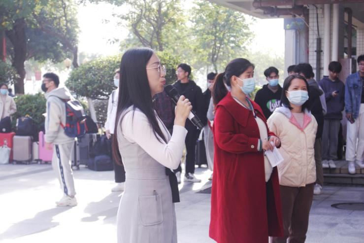 送考现场,张小翠老师对考研学子一直以来的努力付出给予肯定,嘱咐同学们带好考研所需证件和考试用具,保持良好的身心状态,以轻松愉悦的心情迎接考研,鼓励同学们坚定信念,决胜最后时刻。