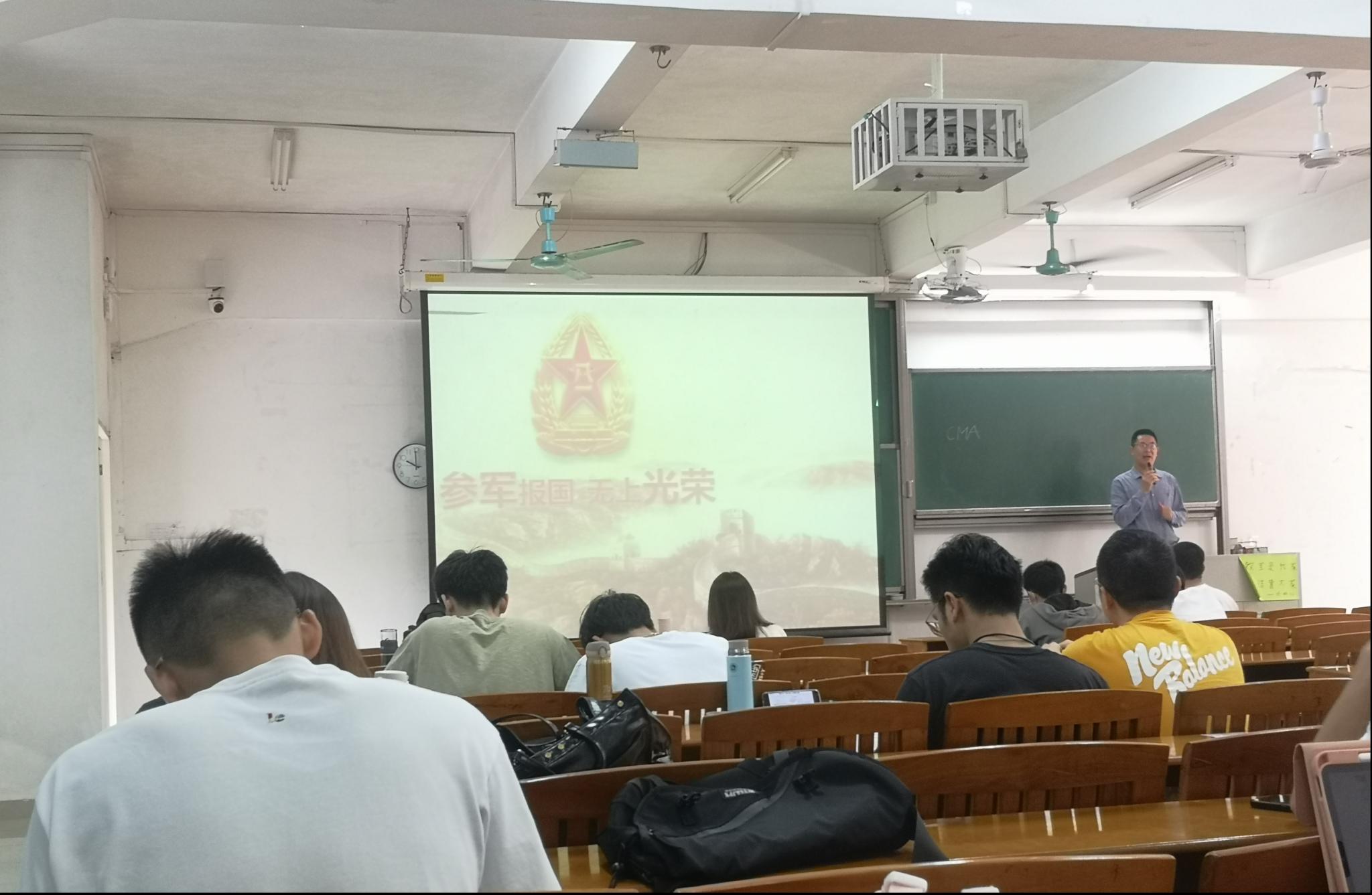 为加强征兵政策宣传、做好2022年下半年高年级大学生应征入伍工作,3月21日上午,明胜m88官网在曾楼206举行2022年下半年征兵宣传会。参加会议的有18、19级土木工程专业部分学生。该院党委副书记刘小海主讲。