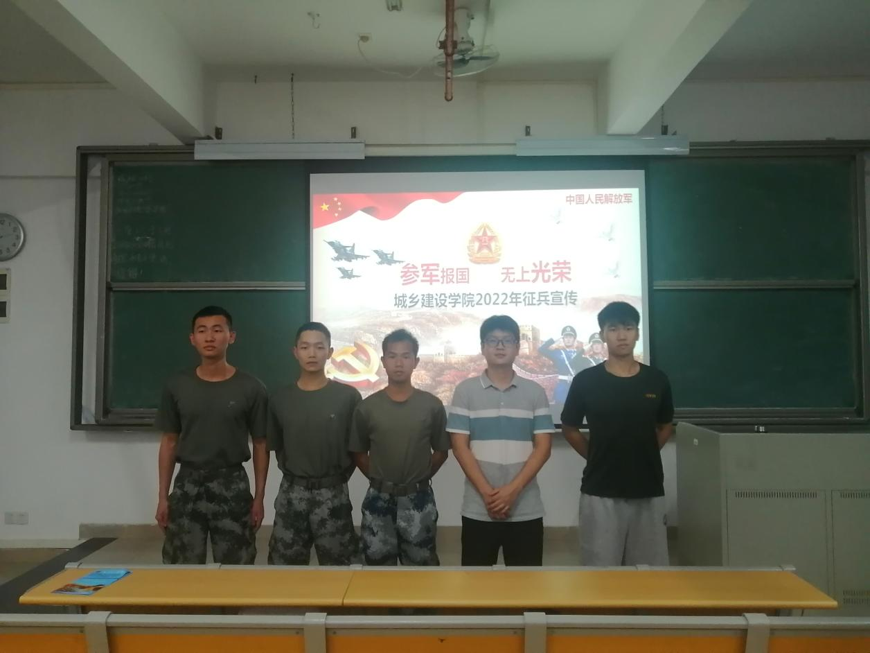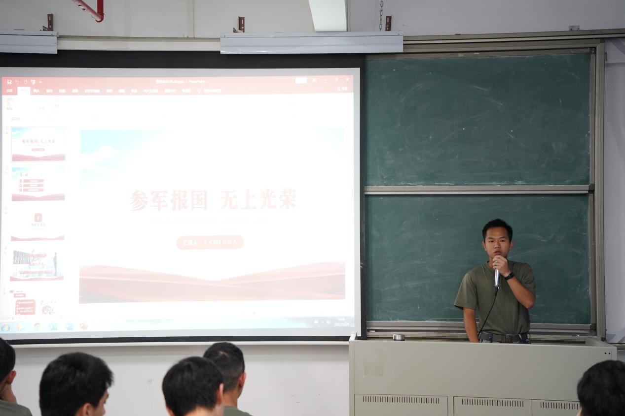 为进一步加强征兵政策宣传,鼓励学生积极参军入伍,报效国家,明胜m88官网于5月24日晚在白云校区D栋404开展2022下半年夏季征兵宣讲会。本次参会人员有辅导员冯中心、学院退役学生代表和各年级同学代表。