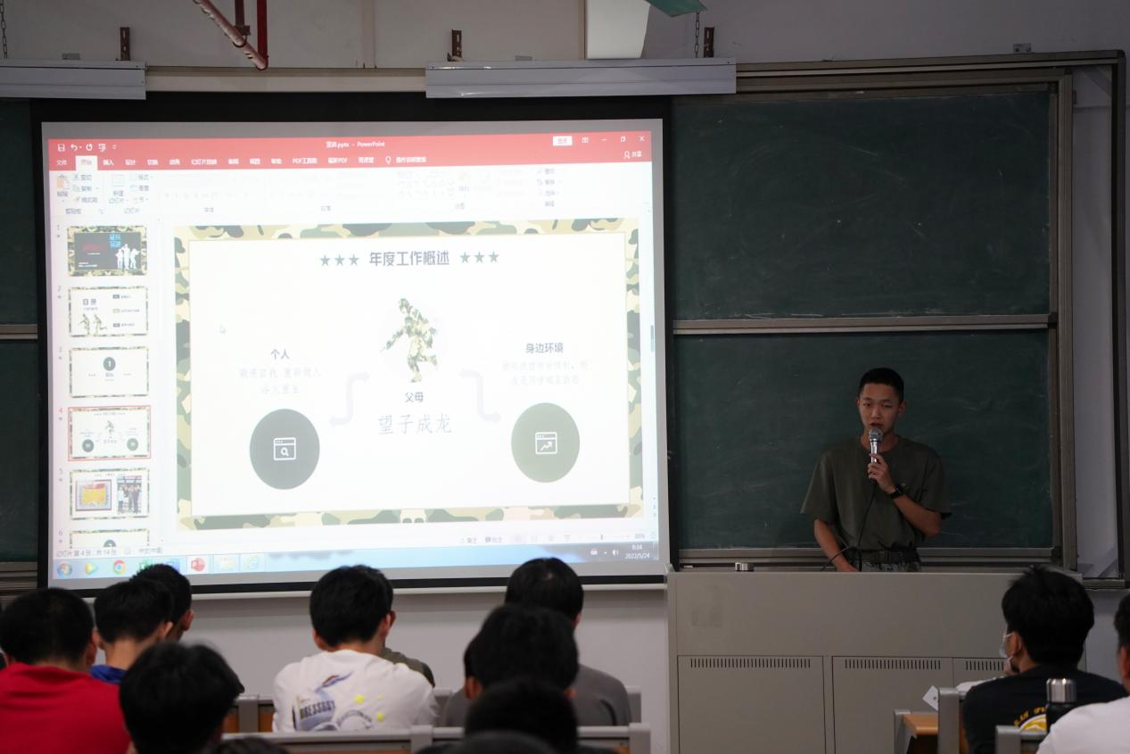随后,来自土木工程专业的三位退伍同学分享了他们的部队生活,不仅分享了军营生活的酸甜苦辣,也介绍了服役经历对未来求职就业、升学优惠政策,呼吁同学们踊跃参军。正如土木193班许汉杰所言:“青春不只眼前的潇洒,还有责任与担当。”服役虽然会经历很多的锻炼,但于正青春的我们而言,这是一次蜕变的机会,让我们更加坚定爱国信念,肩负时代责任和历史使命。