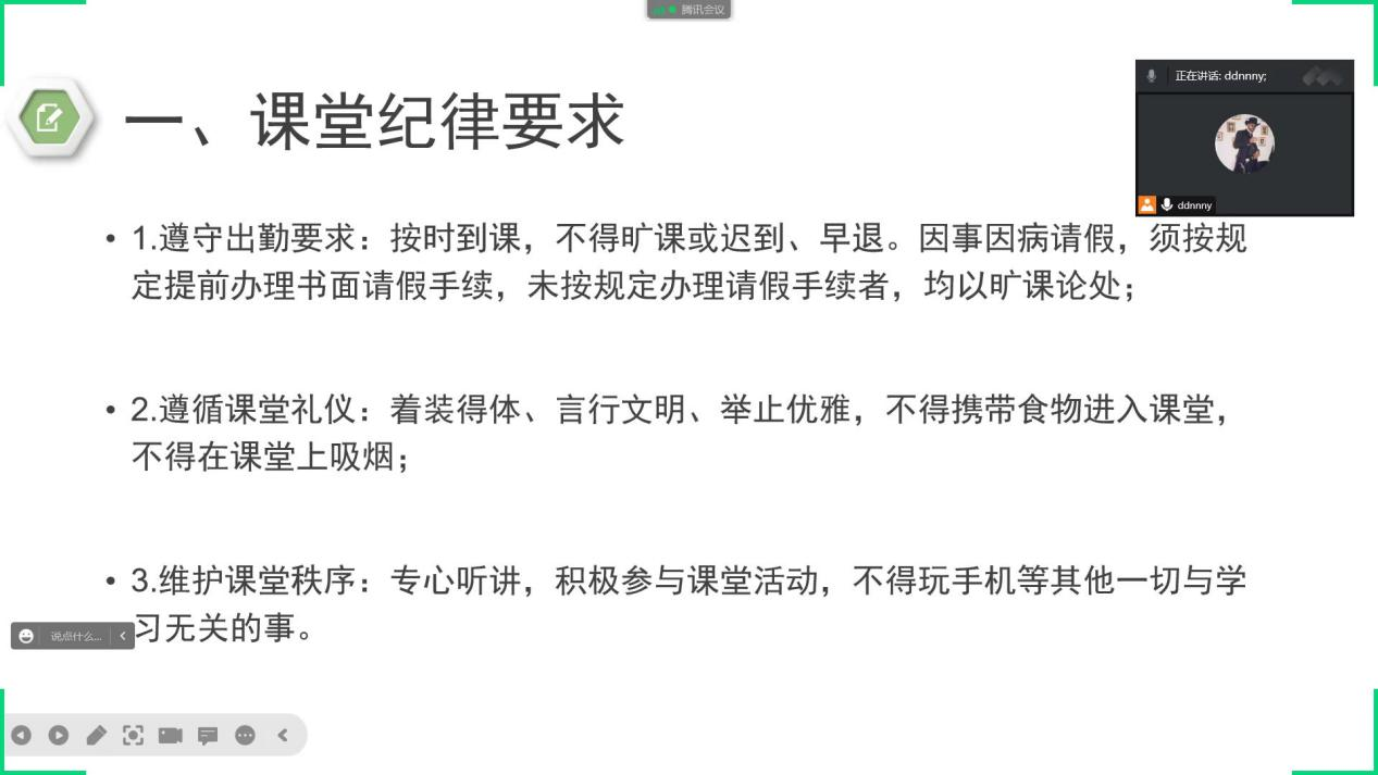 学风党员督导队队长肖睿思对督导队日常考勤工作做了重点说明。她从上课时间和上课纪律两方面说明了督导队的工作重点与要求,并希望各班班委传达给每一位同学,同时期望在大家的共同配合下城乡建设学院的学风越来越好。