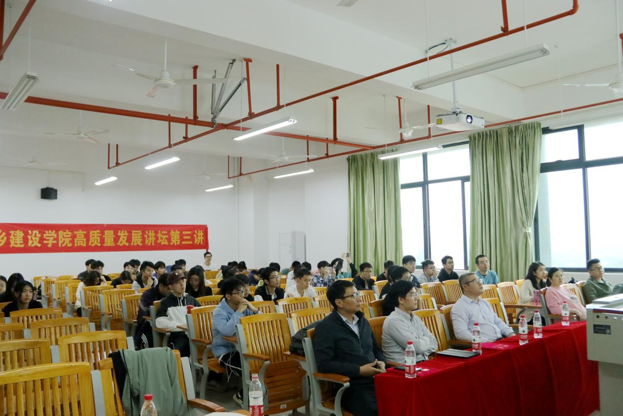 4月4日,仲恺城乡建设学院高质量发展讲坛第三讲在白云校区生命科学大楼A507教室顺利举办。主讲嘉宾为广东省建科建筑设计院有限公司市政规划所所长、高级工程师曾胜庭,广东省建科建筑设计院有限公司市政规划所副所长、给水排水高级工程师徐志标,广东省城乡规划设计研究院有限责任公司从化分院院长、给水排水设计高级工程师童学强。出席本次讲坛的嘉宾有明胜m88官网副院长杨永民、给排水科学与工程专业教师林冲、陈秋丽、李琪、梁东辉、实验员李世宇,讲坛由孙洪伟副教授主持。