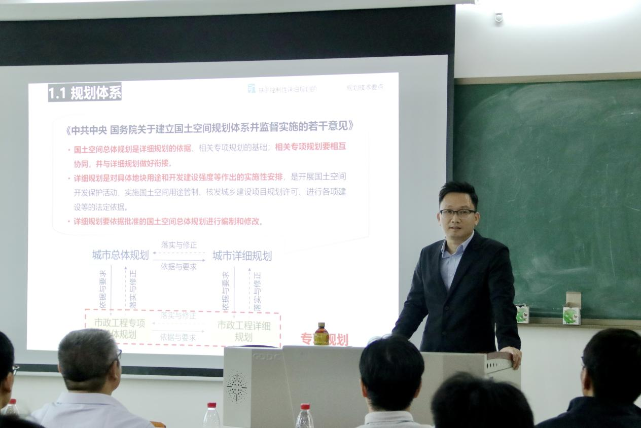 徐志标老师为同学们详细讲解了我国现行的规划体系——国土空间规划体系,并以中山市为例分析了给排水工程规划的现实困境,最后介绍了公司的人才培养机制:双导师制、岗位培训、技术培训、精创课题等,并欢迎同学们积极提交简历。