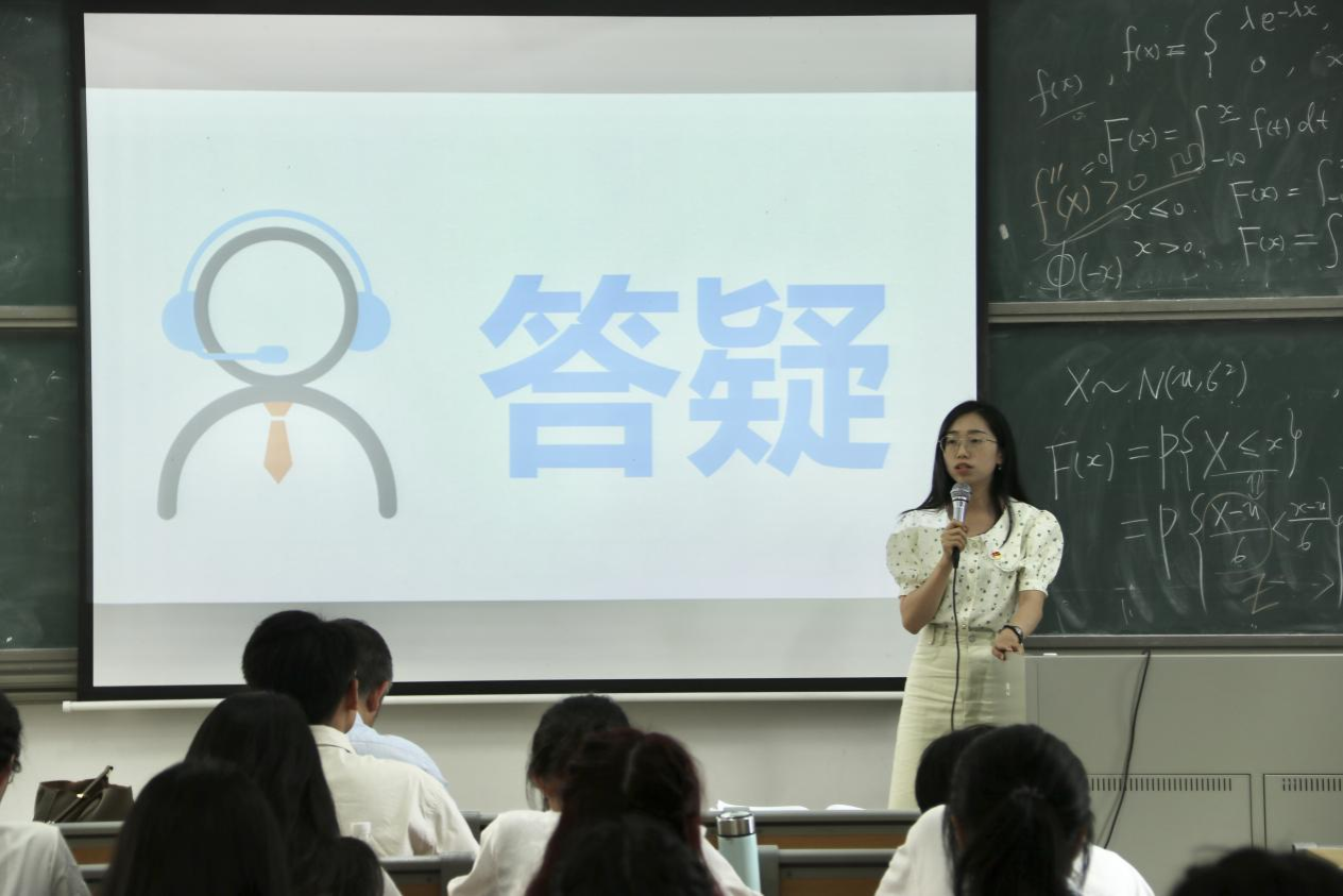 耿梦欣为毕业生们就考研和就业两个方面的一些选择、疑问和形势状况做了详细的见解和建议,解答了考公考研上的一些常见问题,并对毕业后就业方面做了重要提醒。她言道党员们应承担起责任和担当,不忘初心,牢记使命,成为新时代助力中华民族伟大复兴的有为青年。