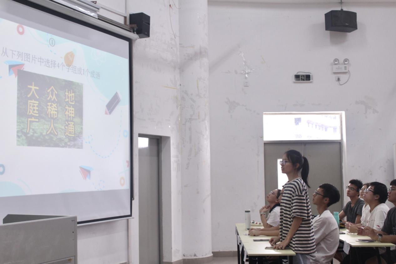 比赛结束后,是“emoji猜成语”小游戏环节,同学们积极参与互动,通过在屏幕上显示的emoji表情包猜出对应的成语,现场充满了欢声笑语。