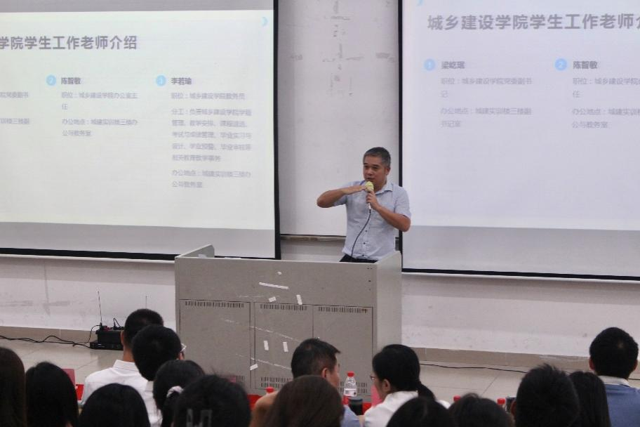党委副书记梁屹珉首先介绍了明胜m88官网学生工作队伍组织架构,让新生进一步认识明胜m88官网的老师。紧接着向同学们作了安全教育讲座,从政治安全、人身安全、财产安全、宿舍安全、交通安全等方面详细地介绍了生活学习中的“底线”,说明了几个“不可触碰的底线”,希望同学们在学习中能保持艰苦朴素的作风,在生活中能明事理、辩是非、遇事三思而后行,注意人身安全与心理健康。