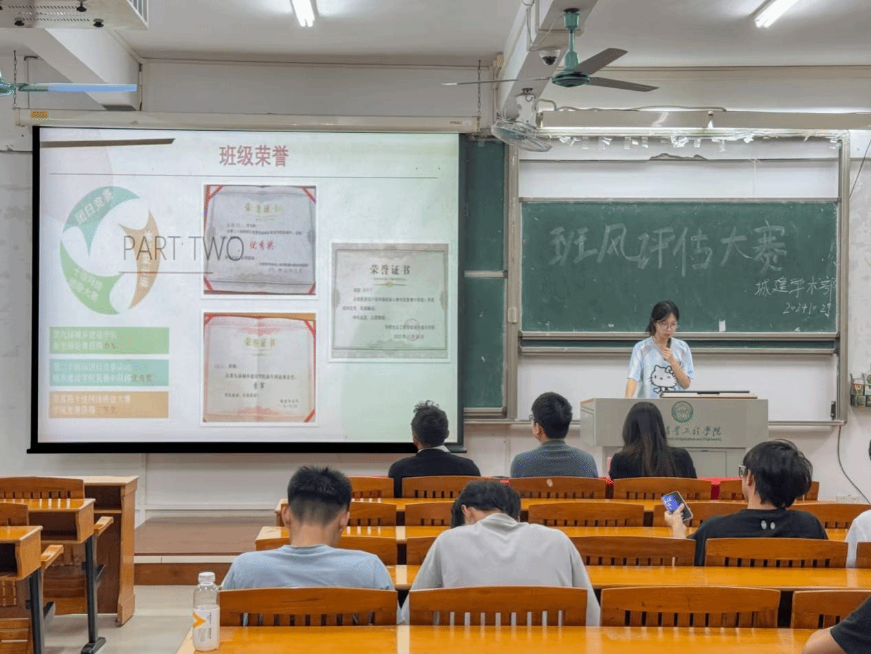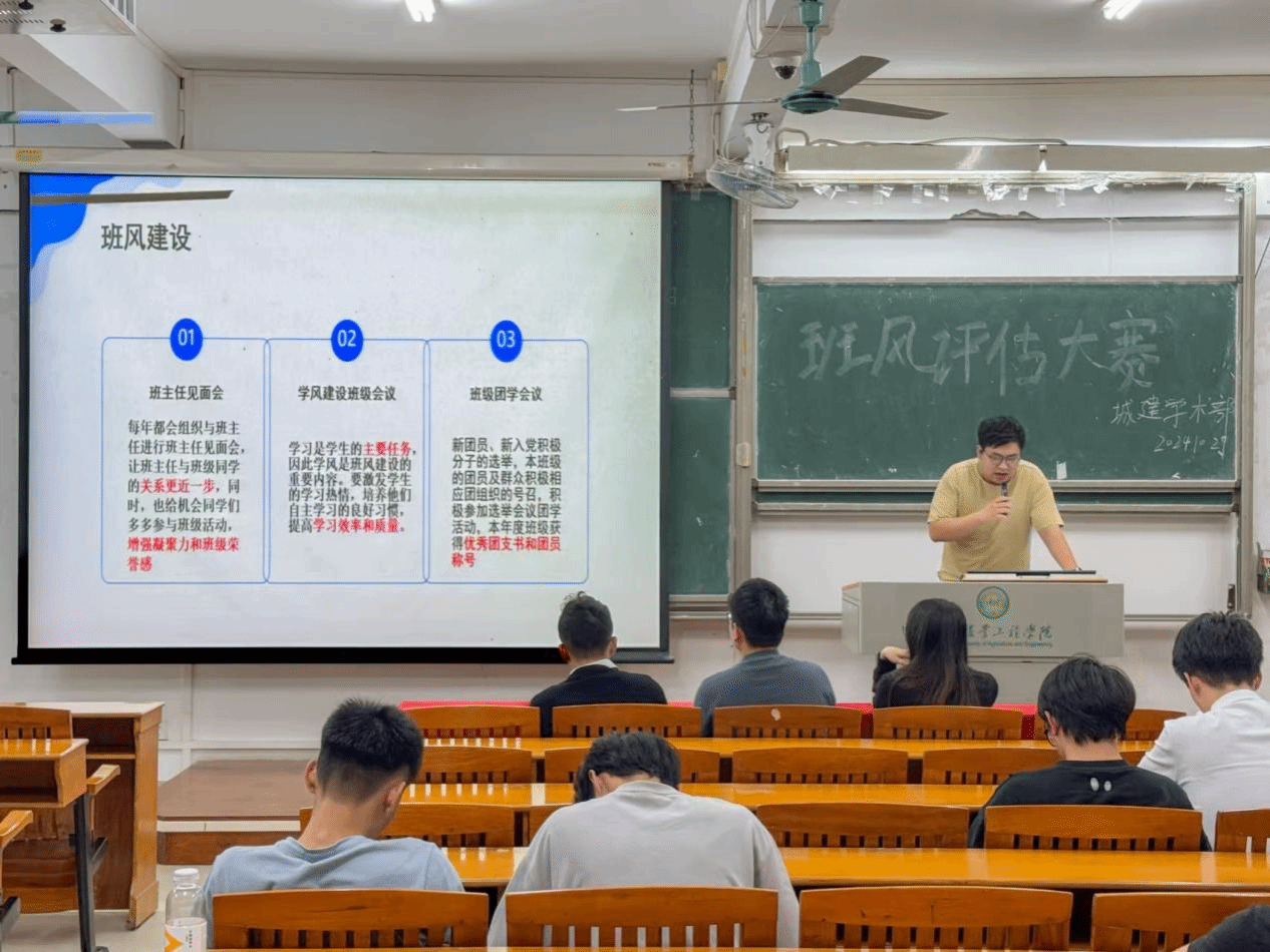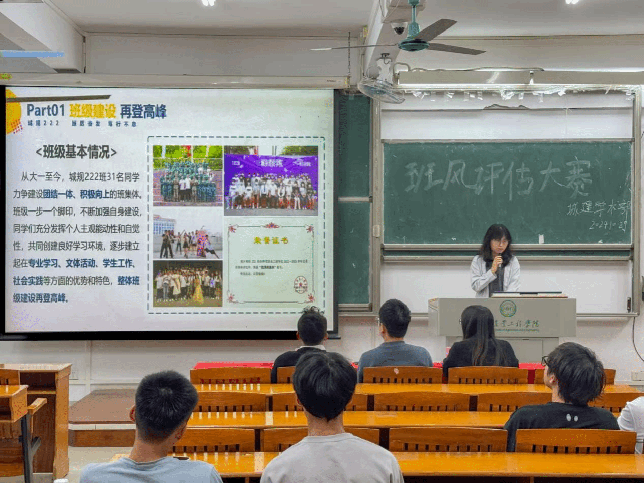 随后,各班代表进行了PPT展示,他们积极发言,通过PPT充分展示了各班的风采。从班级概况到团建活动,从荣誉成就到党团建设,每一幅画面、每一段文字都凝聚着同学们的智慧与汗水,充分展现了他们积极向上、团结协作、勇于进取的精神风貌。班干部更是以身作则,带领同学提高班级凝聚力,积极参与各类比赛活动,为班增光添彩。