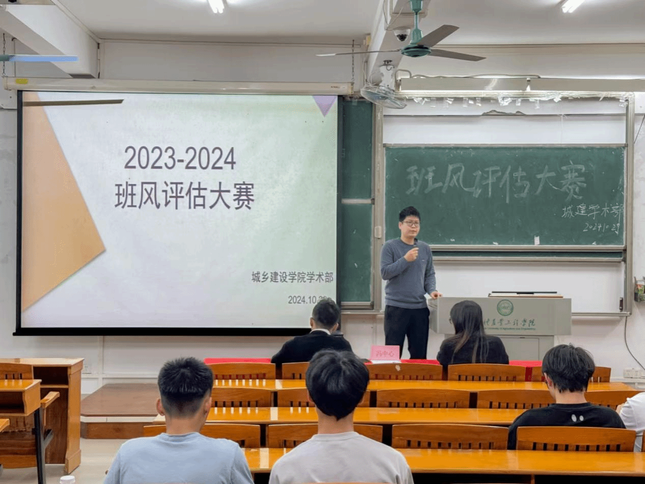 2024年10月29日晚,明胜m88官网在杨楼209教室举办了2023-2024年度班风评估大赛。出席本次评估大赛的嘉宾包括明胜m88官网辅导员冯中心、李超,学院学生会主席团成员杨小星,以及各班代表。