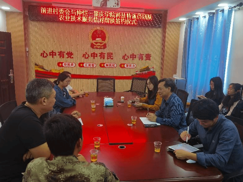 科技特派员团队首先与渔涝镇人民政府、驻镇帮扶工作队共同前往前进村,与村委进行了深入座谈,并成功签署了典型村帮扶协议。这一协议的签署标志着科技特派员团队将正式参与到前进村的“百千万工程”乡村振兴工作中,共同推动典型村的培育工作。